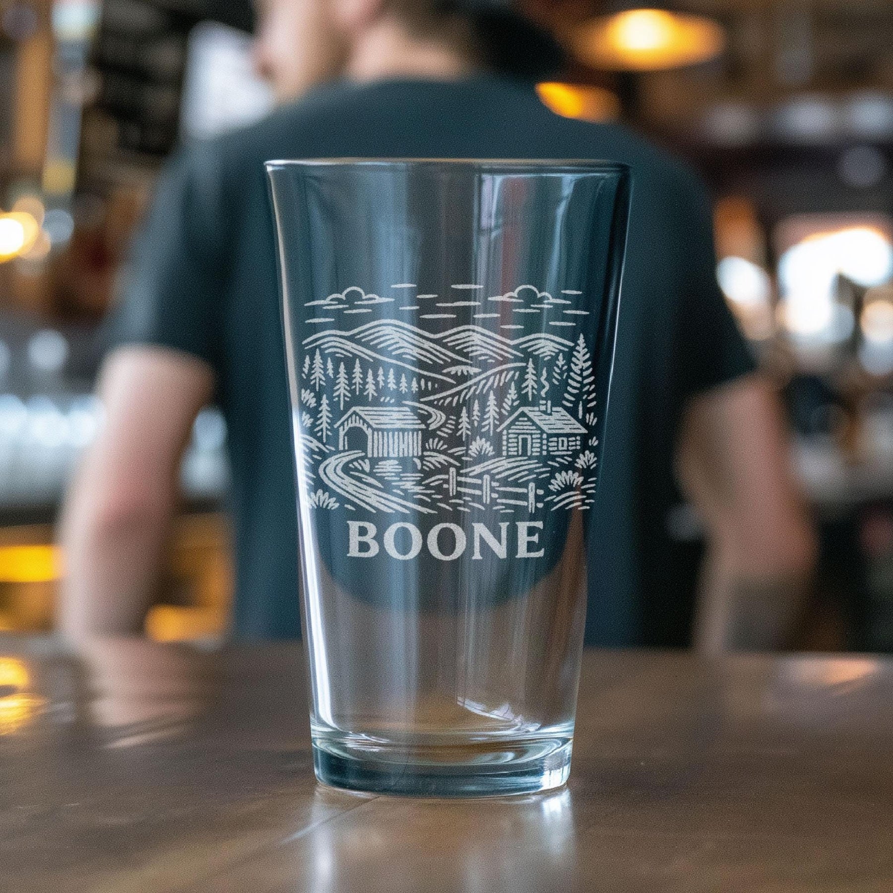Celebrate the mountain charm and adventurous spirit of Boone with this beautifully engraved glass. Inspired by the scenic peaks of the Blue Ridge Mountains, rolling forested hills, and the cozy, outdoorsy warmth of this beloved High Country town, the design reflects everything that makes Boone feel like a true Appalachian escape. Etched in a vintage-inspired style, the artwork carries the calm of wooded trails, crisp mountain air, and the welcoming character that defines life in North Carolina’s highlands.