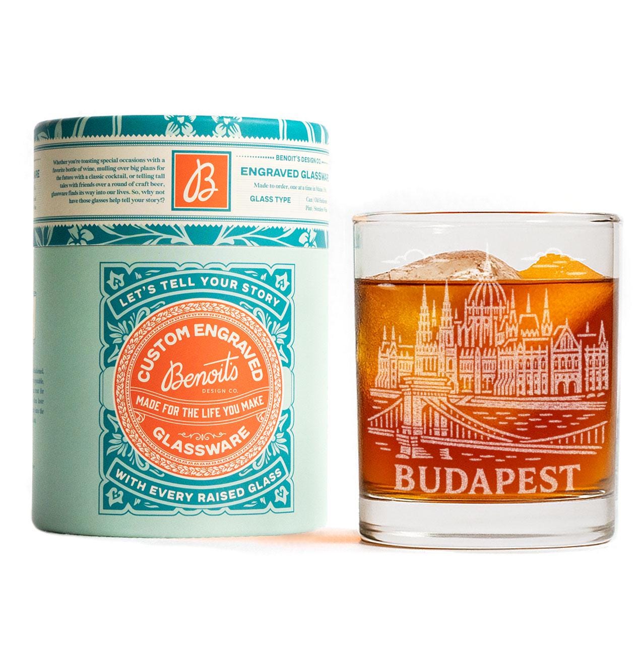 Celebrate the architectural beauty and riverfront charm of Budapest with this finely engraved glass. Featuring iconic European architecture, graceful domes and towers, and the calm suggestion of the Danube dividing the city’s two historic sides, this design reflects the grandeur and warmth of Hungary’s beloved capital. Etched in a vintage-inspired style, the artwork evokes twilight strolls along the river, stone-arched bridges, and the timeless elegance that defines Budapest’s skyline.