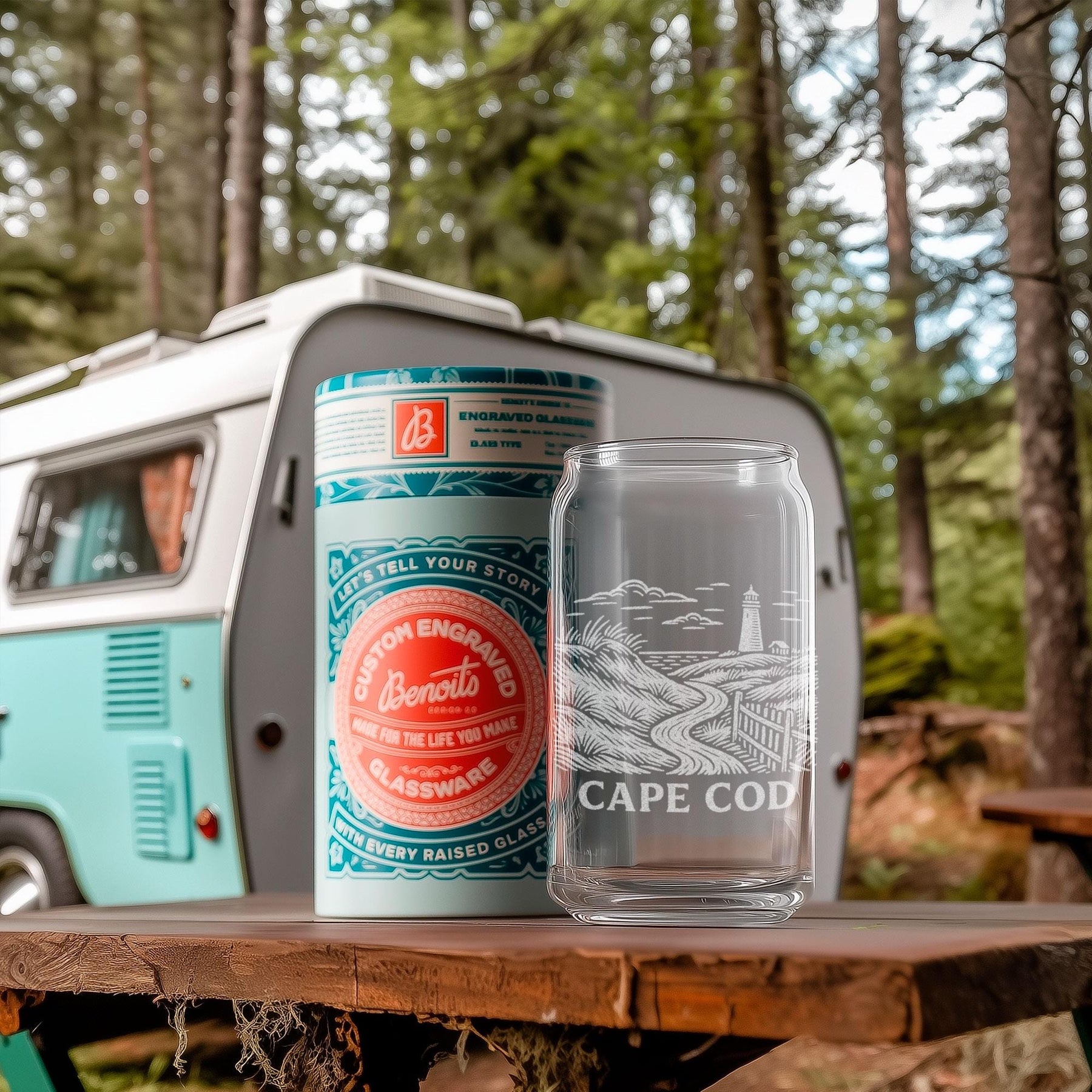 Celebrate the timeless charm and windswept beauty of Cape Cod with this beautifully engraved glass. Featuring sandy dunes, iconic lighthouses, rolling coastal grasses, and the soft curve of the Atlantic horizon, this design captures everything people love about the Cape. Etched in a vintage-inspired style, the artwork reflects calm beach mornings, salt-kissed breezes, and the relaxed rhythm of life along Massachusetts’ most beloved shoreline.