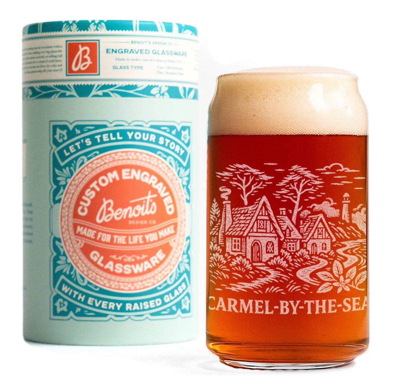 Capture the storybook charm and coastal beauty of Carmel-by-the-Sea with this finely engraved glass. Featuring wind-shaped cypress trees, rolling dunes, rocky shoreline, and the quiet curve of the Pacific horizon, this design reflects the peaceful elegance of one of California’s most beloved seaside towns. Etched in a vintage-inspired style, the artwork evokes misty mornings, sunlit beaches, and the fairytale architecture that makes Carmel feel both refined and wonderfully whimsical.