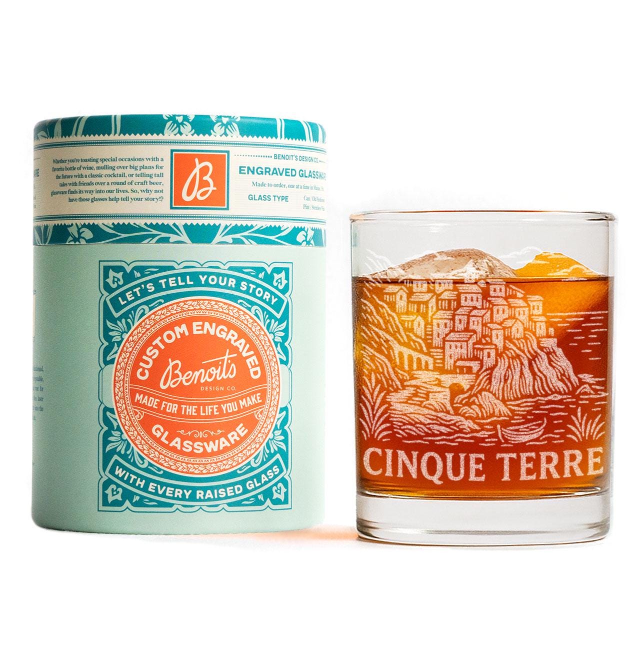 Celebrate the cliffside beauty and vibrant charm of Cinque Terre with this finely engraved glass. Featuring terraced villages perched above the sea, steep rocky coastline, and the sweeping blue horizon of the Ligurian Sea, this design captures the timeless romance of Italy’s iconic coastal region. Etched in a vintage-inspired style, the artwork reflects pastel homes stacked along rugged cliffs, winding footpaths, and the tranquil rhythm of Mediterranean life.