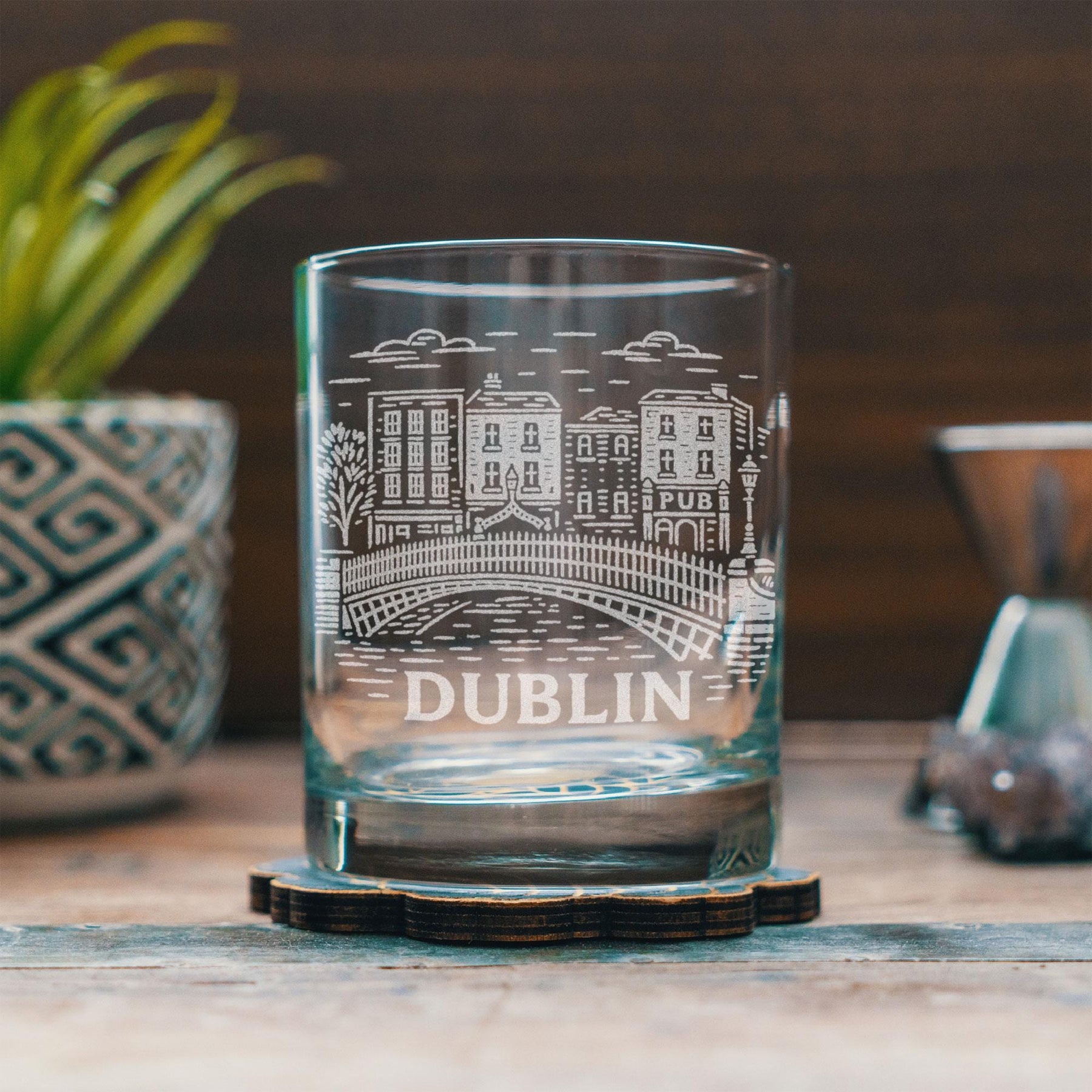 Bring the historic charm and lively spirit of Dublin to your next pour with this beautifully engraved glass. Featuring classic Georgian architecture, riverfront lines inspired by the Liffey, and the warm character of Ireland’s capital, this design captures the timeless magic of one of Europe’s most beloved cities. Etched in a vintage-inspired style, the artwork reflects cobblestone streets, iconic bridges, and the welcoming atmosphere found in every pub, park, and corner of Dublin.