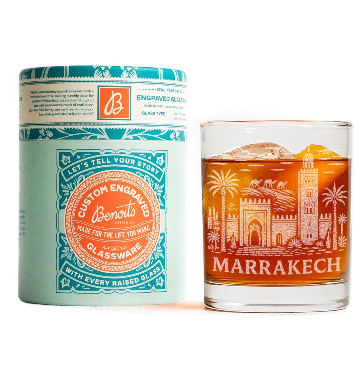 This etched design captures that spirit with gentle city silhouettes, desert-inspired lines, and subtle architectural elements drawn from the medina’s iconic aesthetic. It’s a tribute to sunlit rooftops, ornate details, and the captivating energy that makes Marrakech one of Morocco’s most unforgettable destinations.