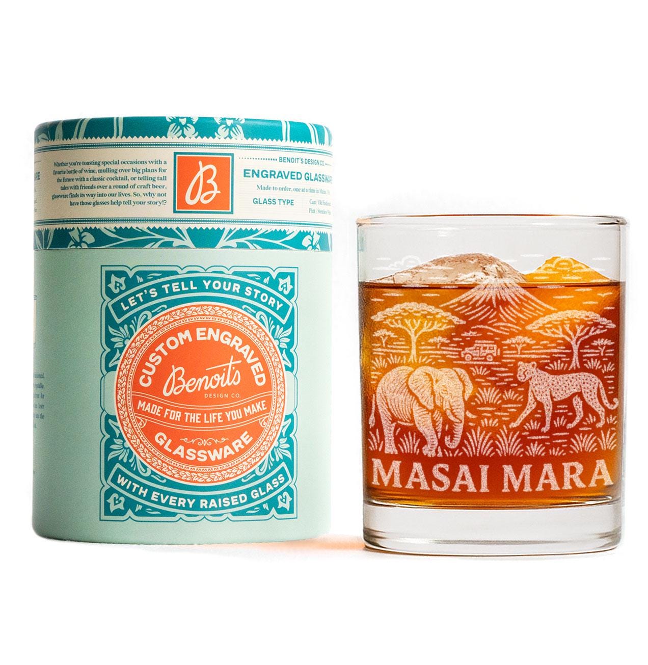 This etched design reflects that atmosphere with soft savanna lines, distant horizon silhouettes, and subtle scenic touches inspired by the region’s iconic wildlife and sweeping grasslands. It’s a tribute to still mornings, vast open spaces, and the unforgettable magic that makes the Masai Mara one of Africa’s most cherished safari destinations.