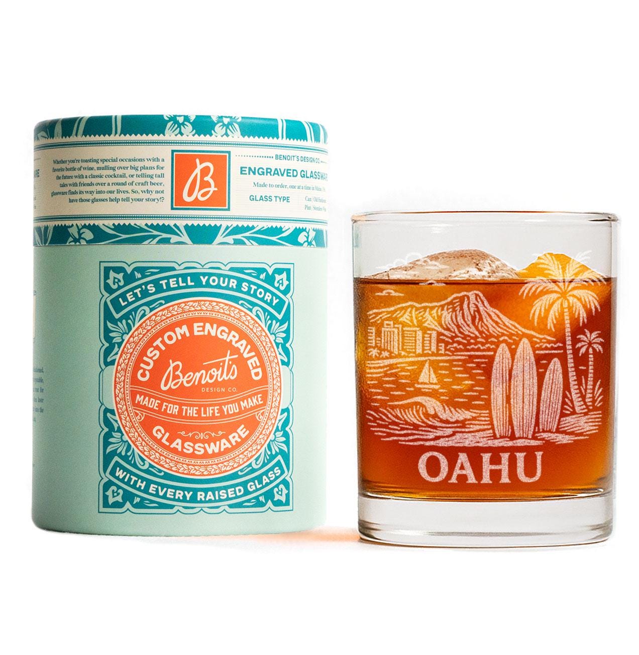 This etched design reflects that spirit with shoreline contours, mountain silhouettes, and tropical scenic lines inspired by Oahu’s most iconic landscapes. It’s a tribute to breezy afternoons, shimmering Pacific horizons, and the island charm that makes Oahu one of Hawaii’s most beloved destinations.
