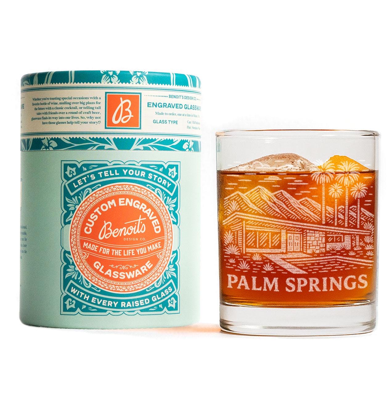This etched design reflects that atmosphere with mountain silhouettes, desert contours, and subtle scenic lines inspired by Palm Springs’ iconic landscapes and architectural elegance. It’s a tribute to golden-hour evenings, breezy palms, and the sun-soaked serenity that makes this desert city one of California’s most beloved escapes.