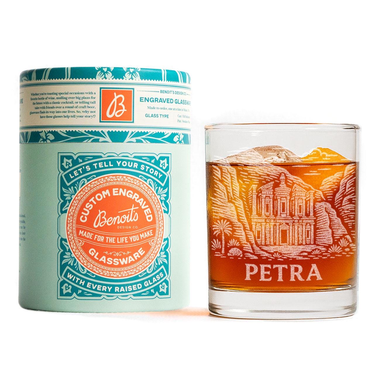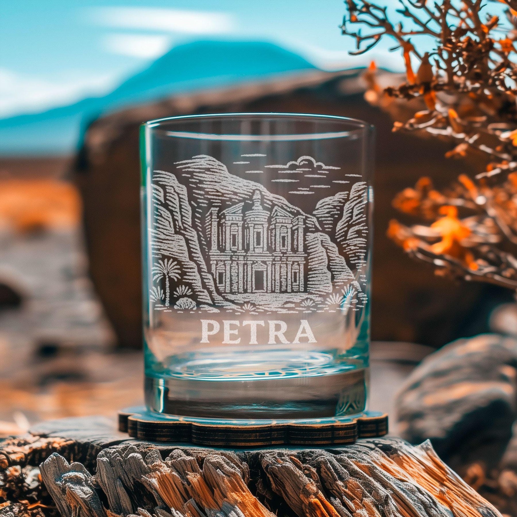 This etched design reflects that magic with canyon-inspired lines, carved rock silhouettes, and architectural contours drawn from Petra’s most iconic structures. It’s a tribute to ancient pathways, desert horizons, and the unforgettable presence of a city once lost to time and now cherished by travelers from around the world.
