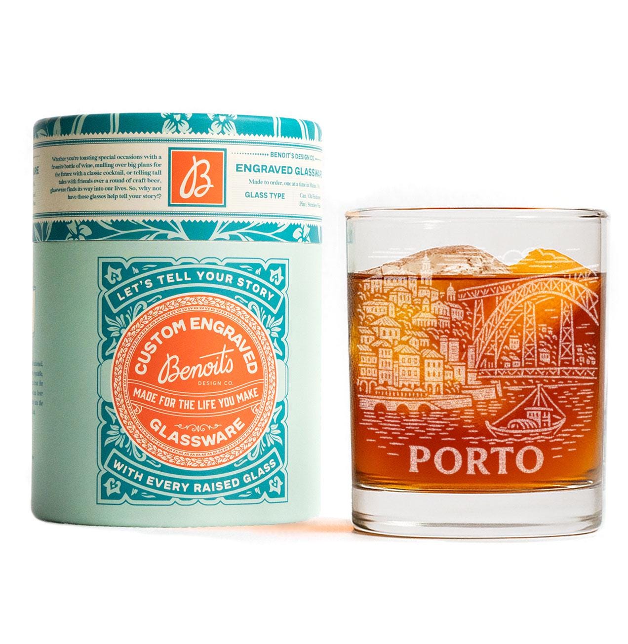 This etched design reflects that atmosphere with river contours, hillside silhouettes, and architectural lines inspired by Porto’s most iconic views. It’s a tribute to cobblestone wanderings, sunlit rooftops, and the vibrant character that makes Porto one of Portugal’s most captivating destinations.