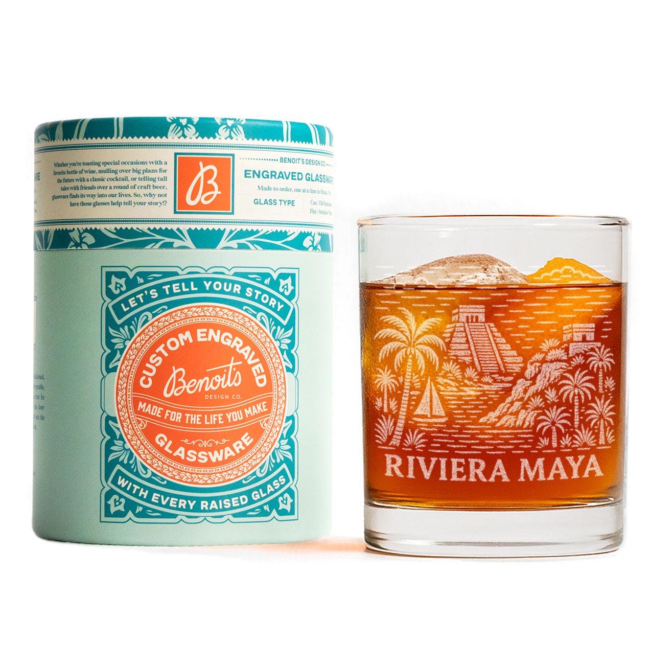 This etched design reflects that atmosphere with shoreline contours, palm-inspired silhouettes, and gentle scenic lines drawn from this iconic slice of the Mexican Caribbean. It’s a tribute to warm evenings, crystal-clear horizons, and the coastal charm that makes the Riviera Maya one of Mexico’s most beloved destinations.