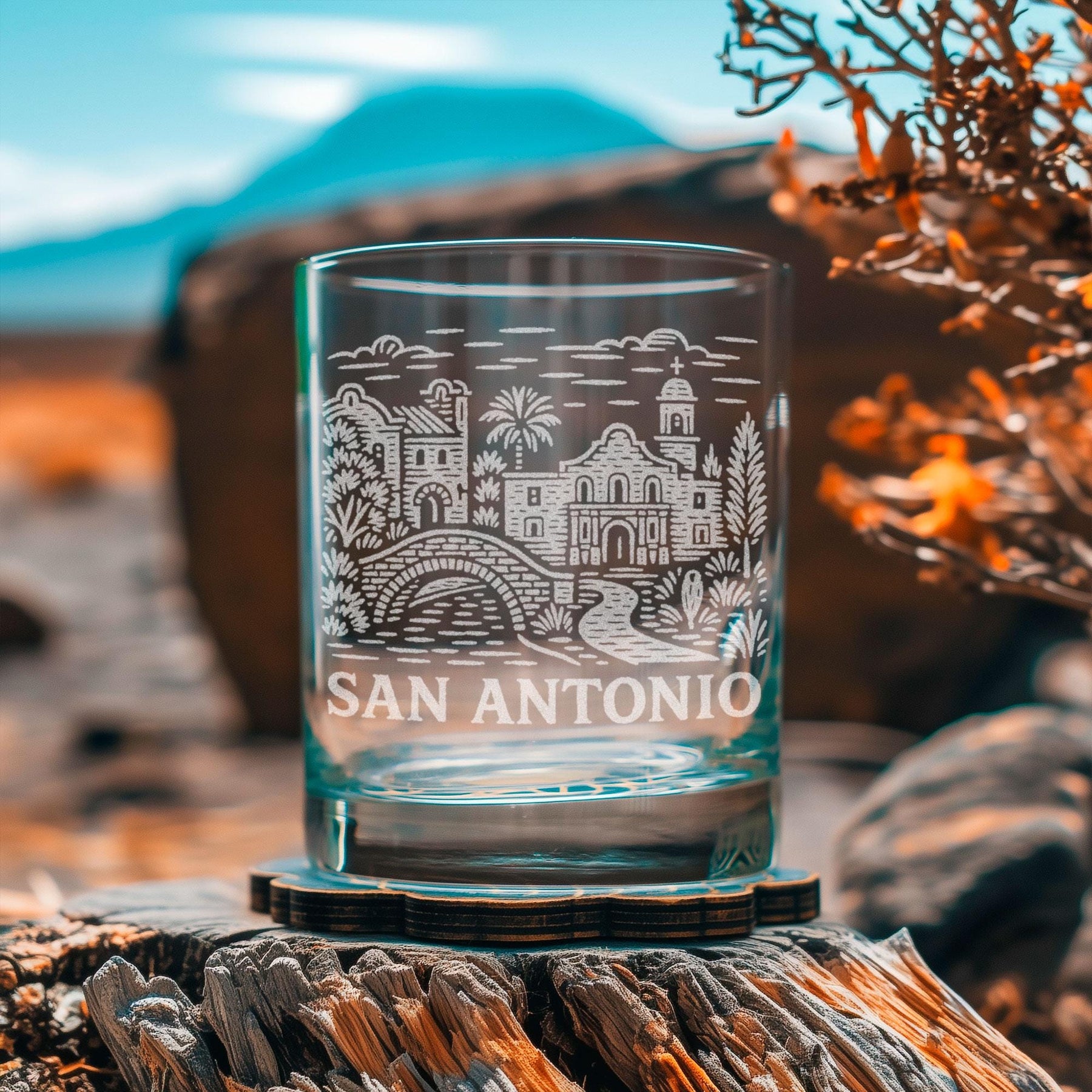 This etched design reflects that atmosphere with river contours, architectural silhouettes, and soft scenic lines inspired by San Antonio’s most unforgettable views. It’s a tribute to historic streets, shaded waterways, and the welcoming spirit that makes San Antonio one of Texas’s most beloved destinations.