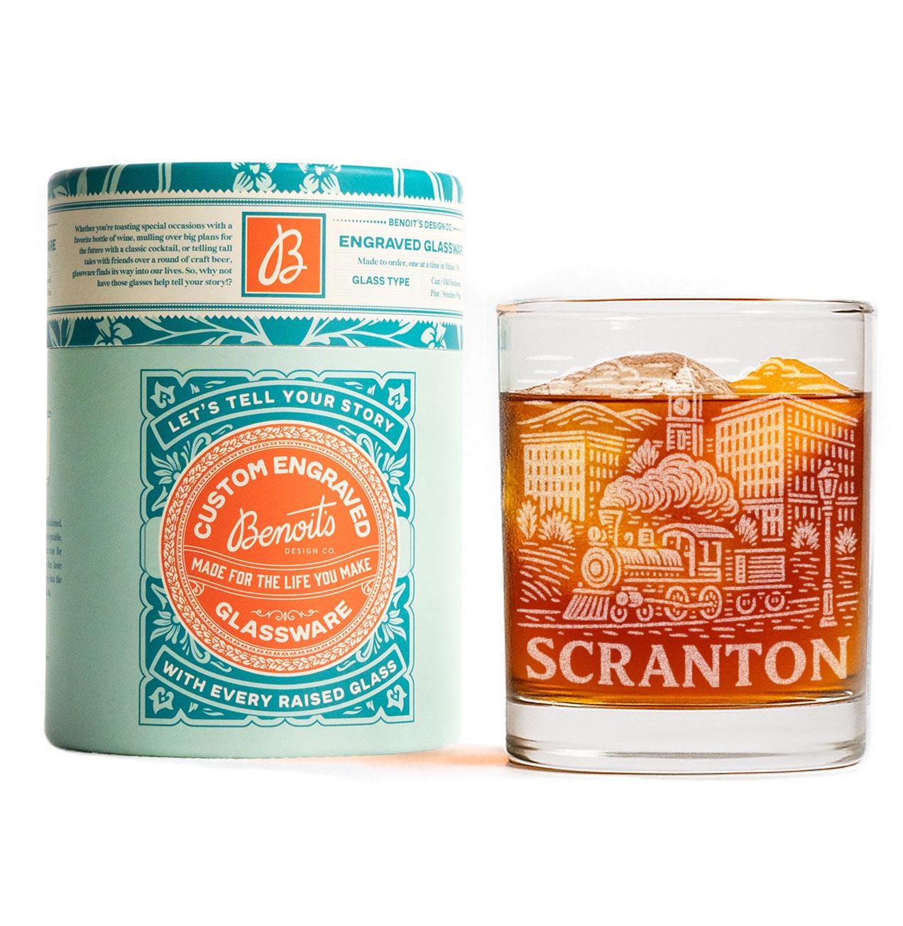 This etched design highlights the distinctive skyline and the surrounding scenery that defines the Electric City. Whether you’ve walked through Courthouse Square, visited the Steamtown rail yards, or simply carry fond memories of life in the valley, this glass brings Scranton’s heritage and hometown pride to your everyday ritual.