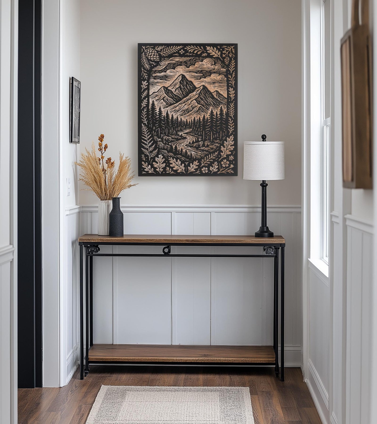 Bring the beauty of the outdoors inside with this engraved birch wall art featuring a mountain range framed by pines and forest details in a linocut style. Made in America with careful attention to detail, this piece blends rustic craftsmanship with timeless design. A perfect accent for cabins, lodges, or any space inspired by adventure and the great outdoors.