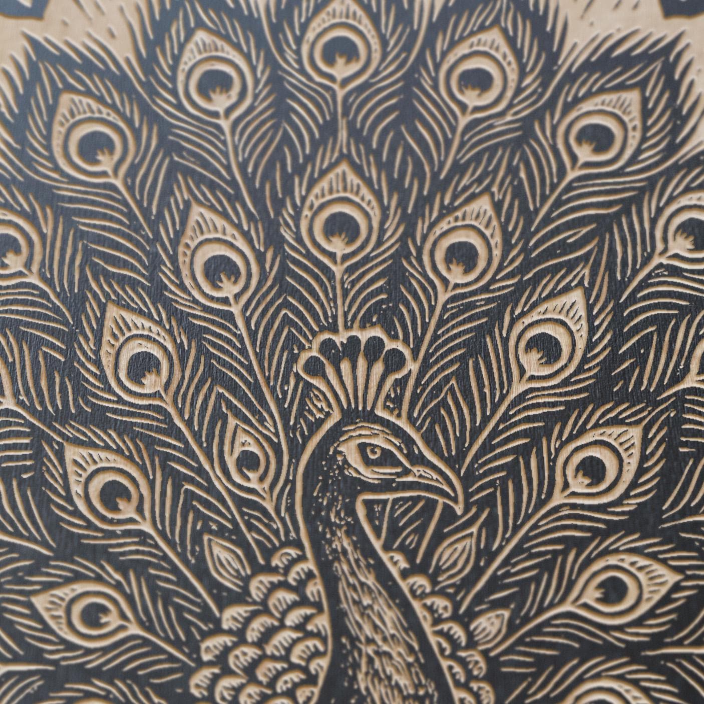 Celebrate timeless beauty with this engraved birch wood wall art featuring a detailed peacock framed in a linocut style. Each piece is carefully crafted in America with close attention to detail, blending rustic craftsmanship with graceful design. A striking accent for wildlife lovers, elegant interiors, or anyone who appreciates art inspired by nature.