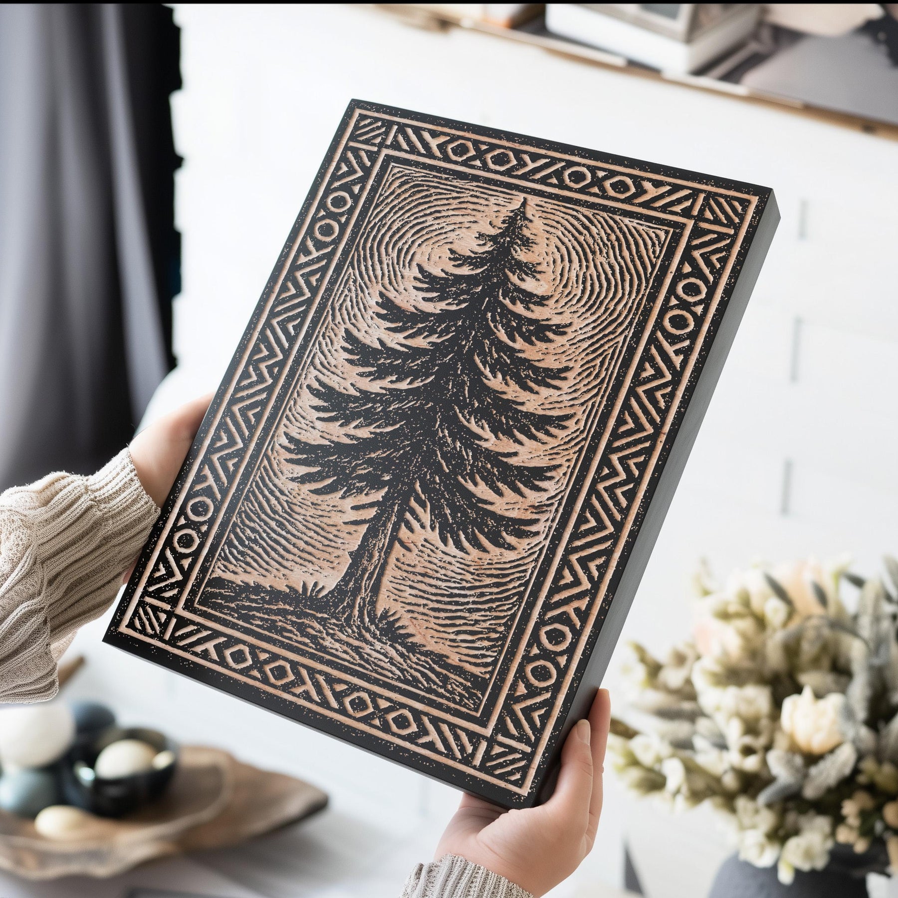 Bring the spirit of the forest indoors with this engraved birch wood wall art featuring a stately pine tree framed in a linocut style. Made in America with thoughtful attention to detail, this piece blends rustic craftsmanship with timeless woodland beauty. A perfect accent for cabins, lodges, or anyone who loves the great outdoors.
