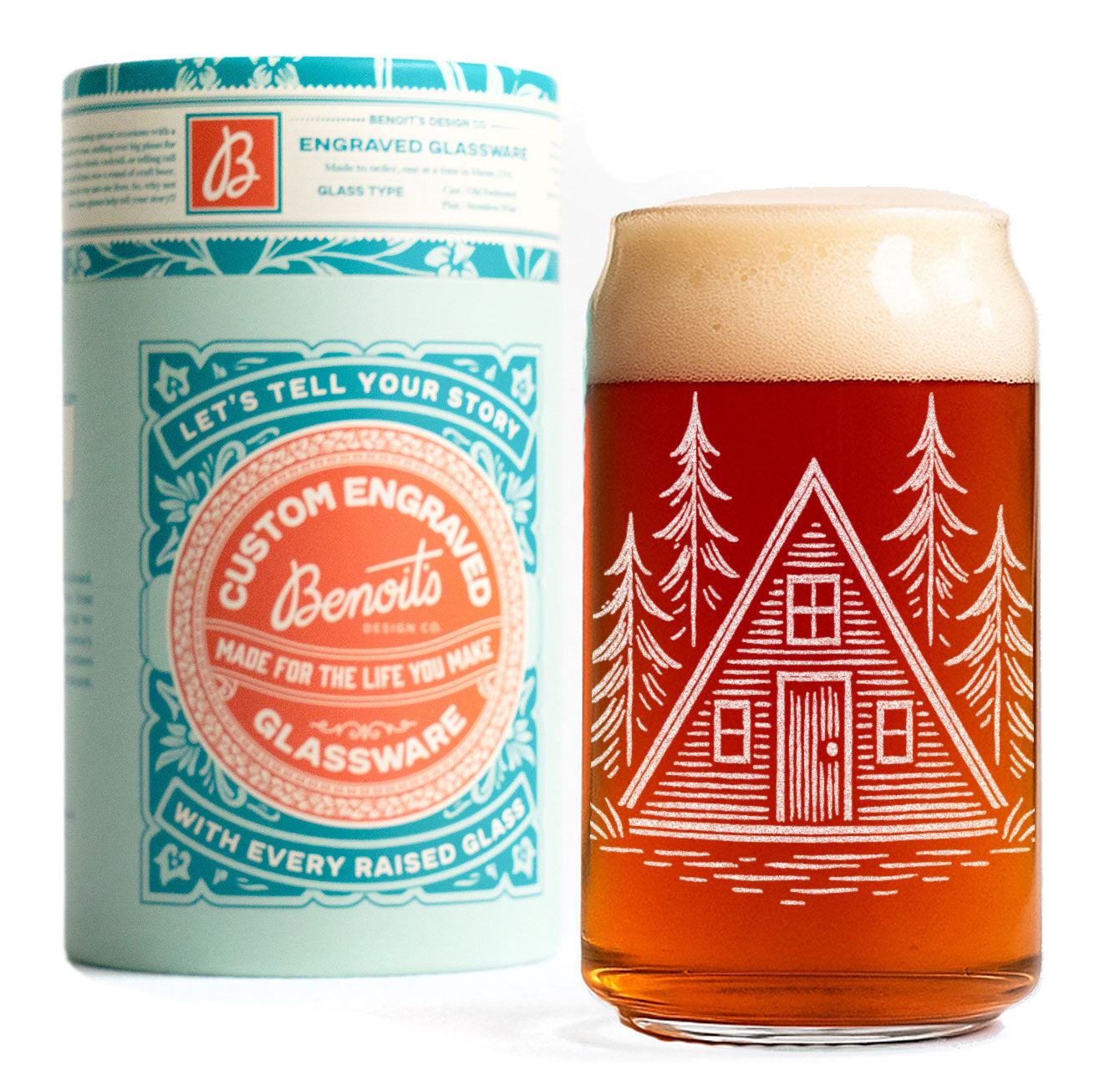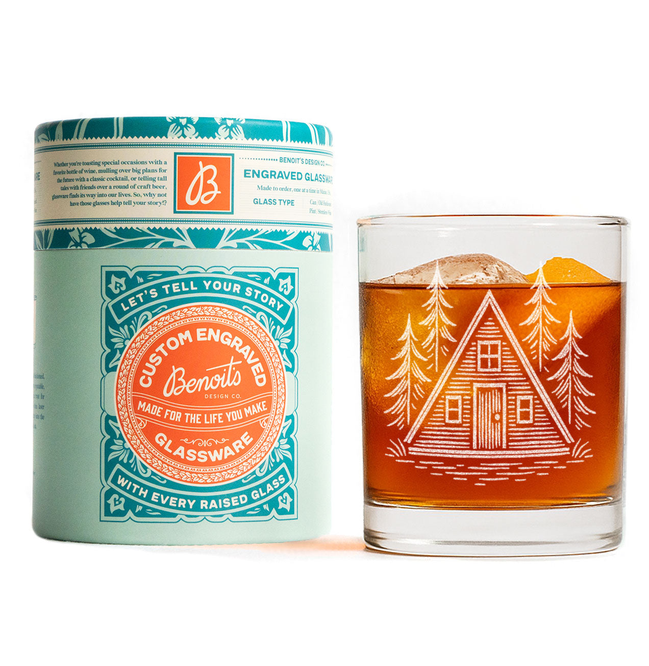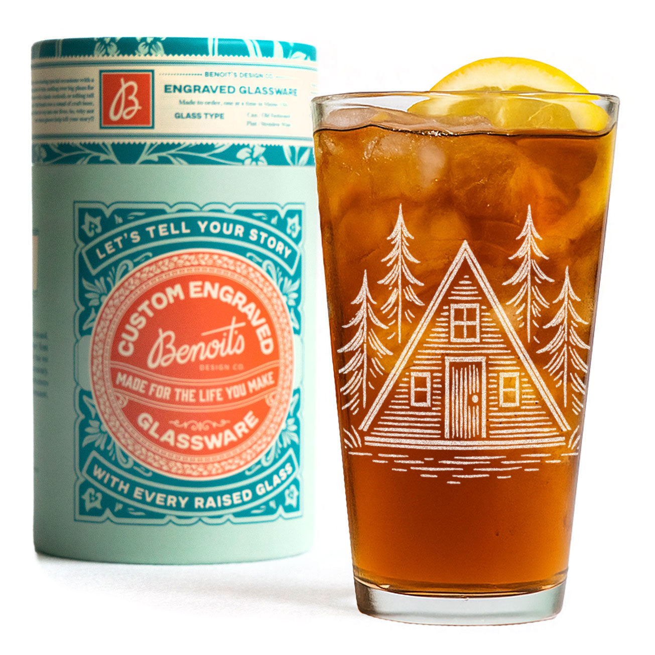 Set up camp at your next get-together with this A Frame cabin etched into your glassware! This unique design is sure to impress your guests - cheers!