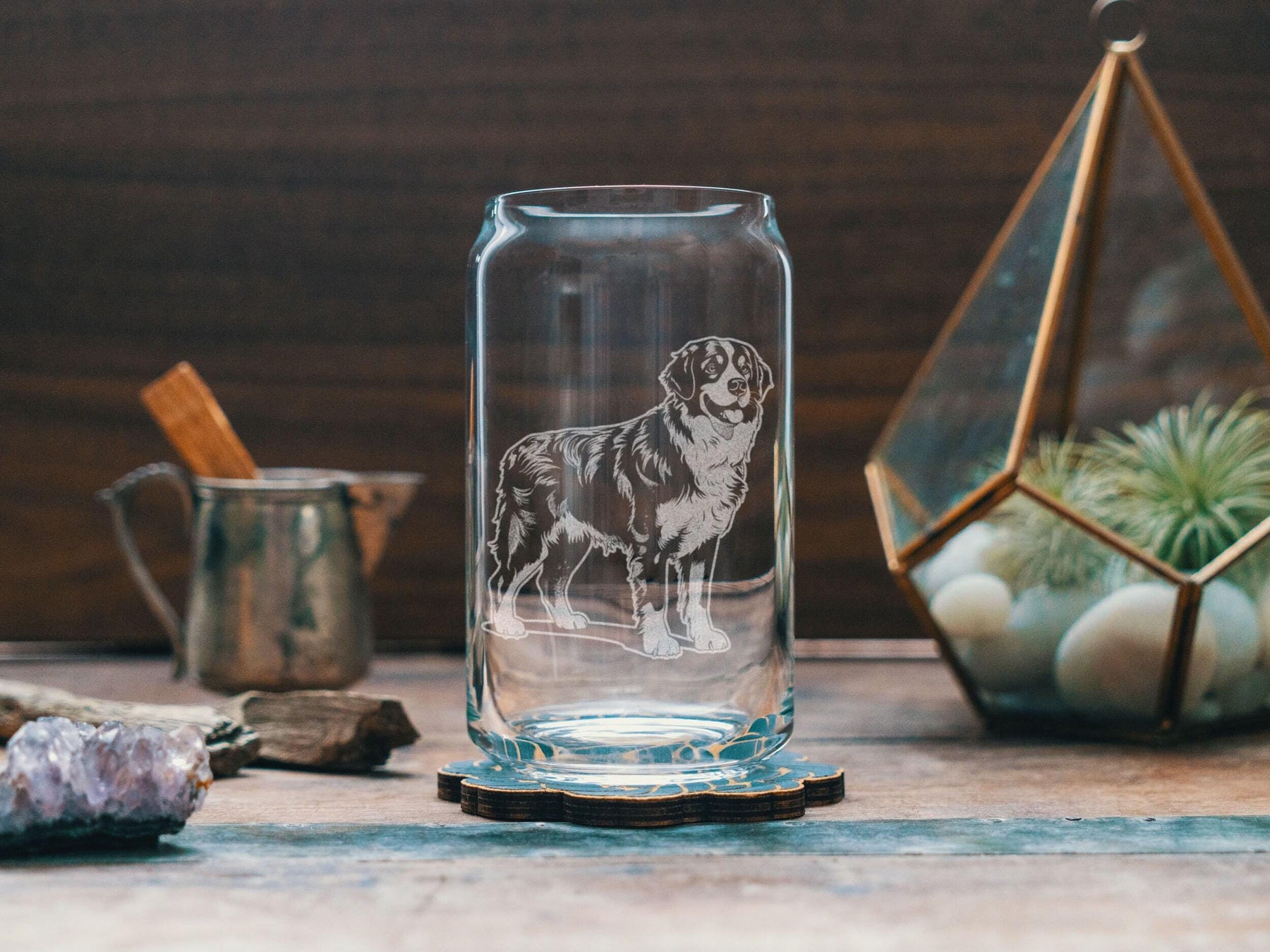 Celebrate your beloved four-legged friend with these Dog Engraved Glasses! Featuring a Bernese Mountain, these customizable glasses can be engraved with your dog’s name, making them the perfect pet owner gift for any occasion. Enjoy your favorite beer, whiskey, wine or drinks with a personalized touch!