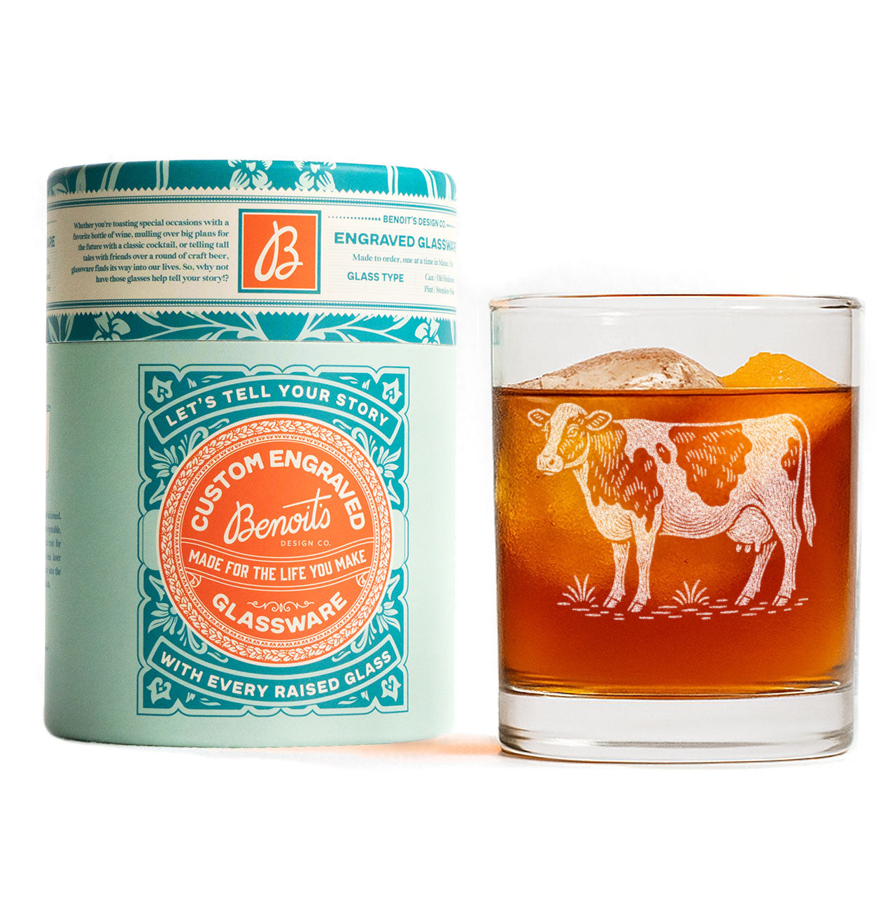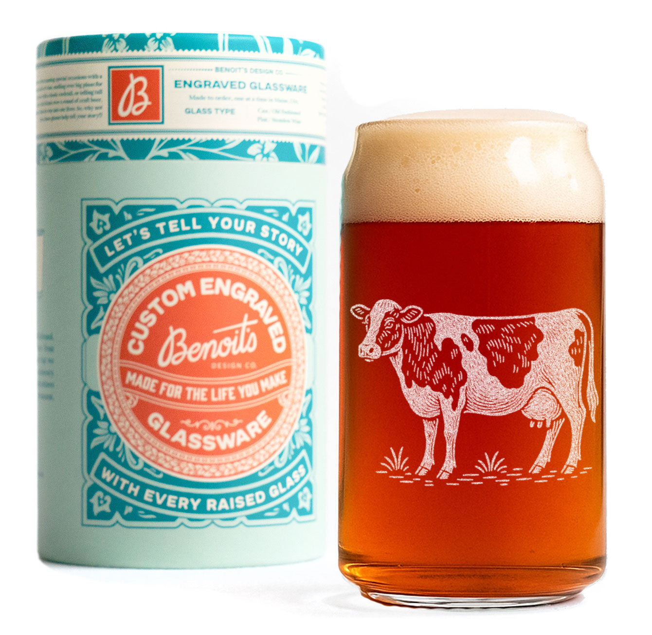 Each glass is etched in our Maine studio for crisp detail and a lasting design that won’t fade or wash away. Whether you’re sipping iced coffee, milk, or your favorite cocktail, this friendly cow adds a comforting, rustic feel to every glass.