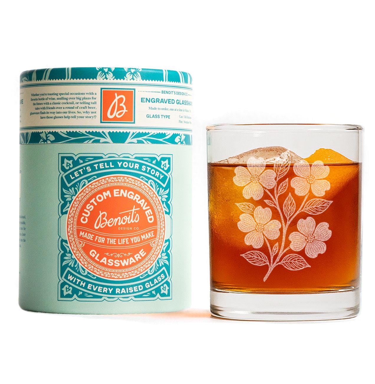 Inspired by the grace and renewal of spring, our Dogwood Branch Glasses feature an elegant engraving of blooming dogwood flowers — a timeless symbol of hope, strength, and natural beauty.