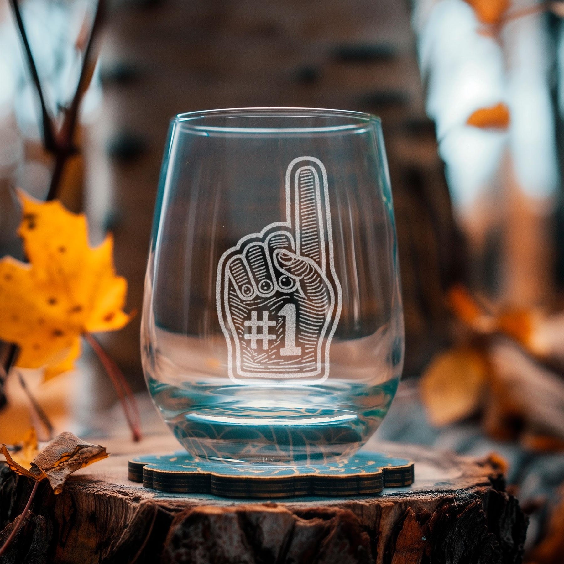 Raise your glass and cheer like a true fan with our Foam Finger Glasses! Featuring a laser-etched vintage-style “#1” foam finger, these glasses are a spirited nod to every unforgettable game day and loyal fan moment.