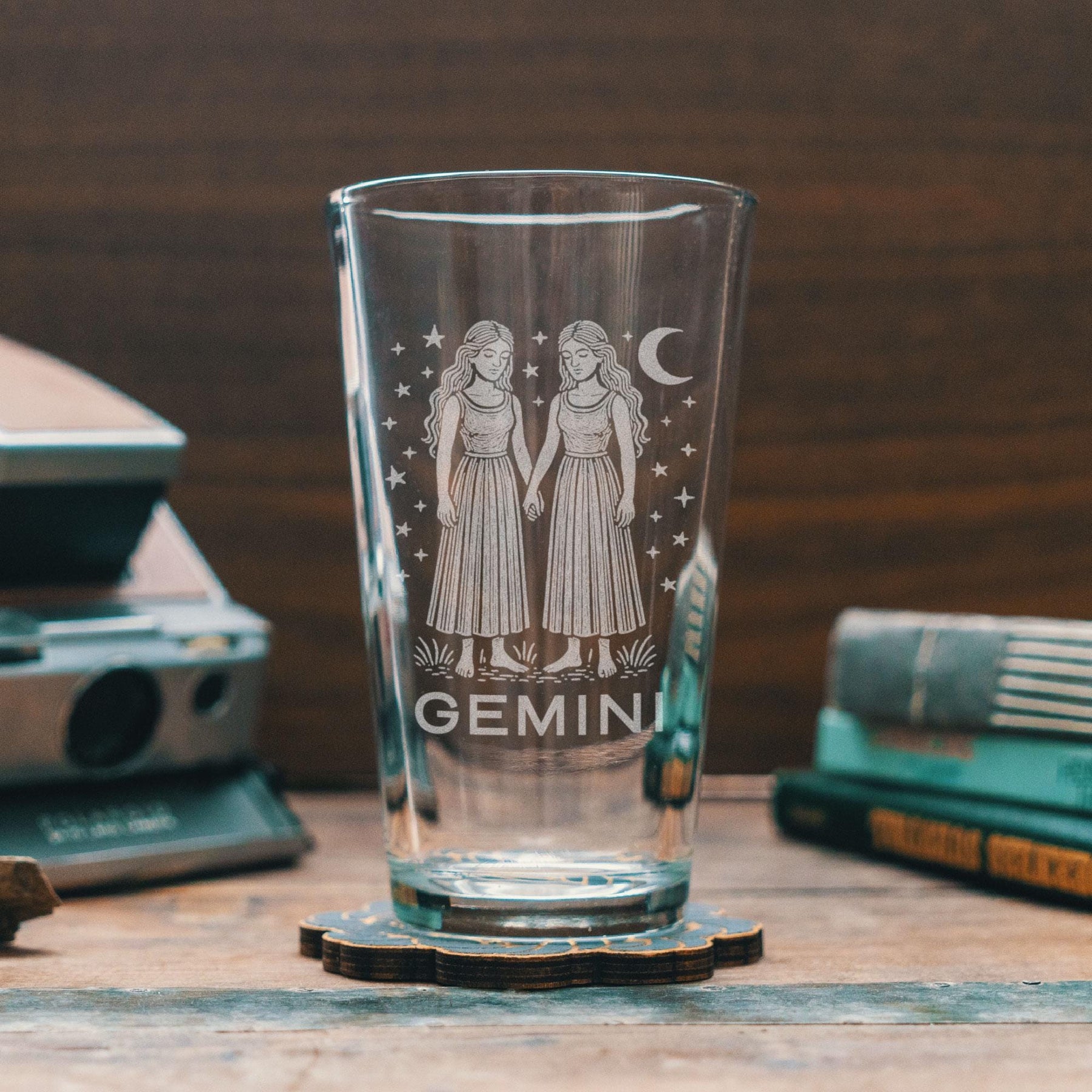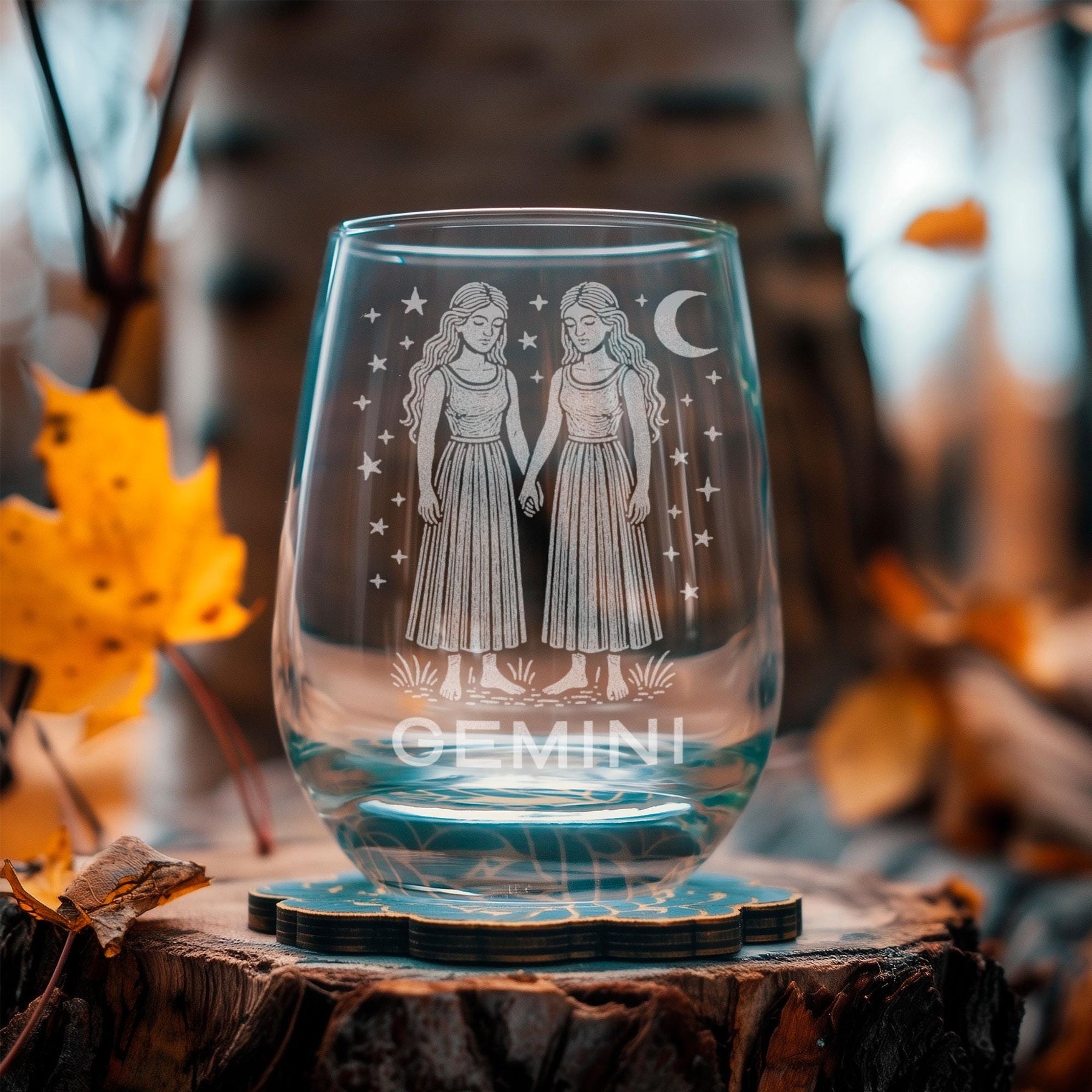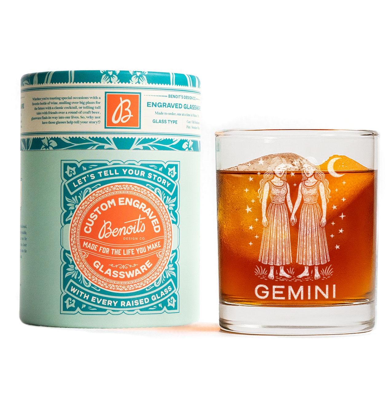 Curious, clever, and endlessly expressive — this engraved glass celebrates the dual nature and lively spirit of Gemini. Featuring an intricate illustration of the celestial twins beneath the moon and stars, it captures the balance between intellect and imagination that defines this air sign. Perfect for wine, cocktails, or a late-night conversation under the stars, this piece embodies Gemini’s charm, adaptability, and endless curiosity.