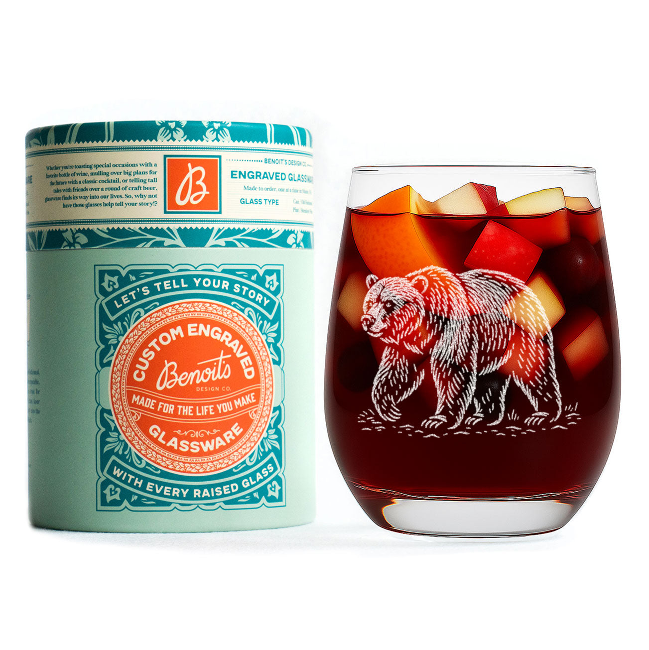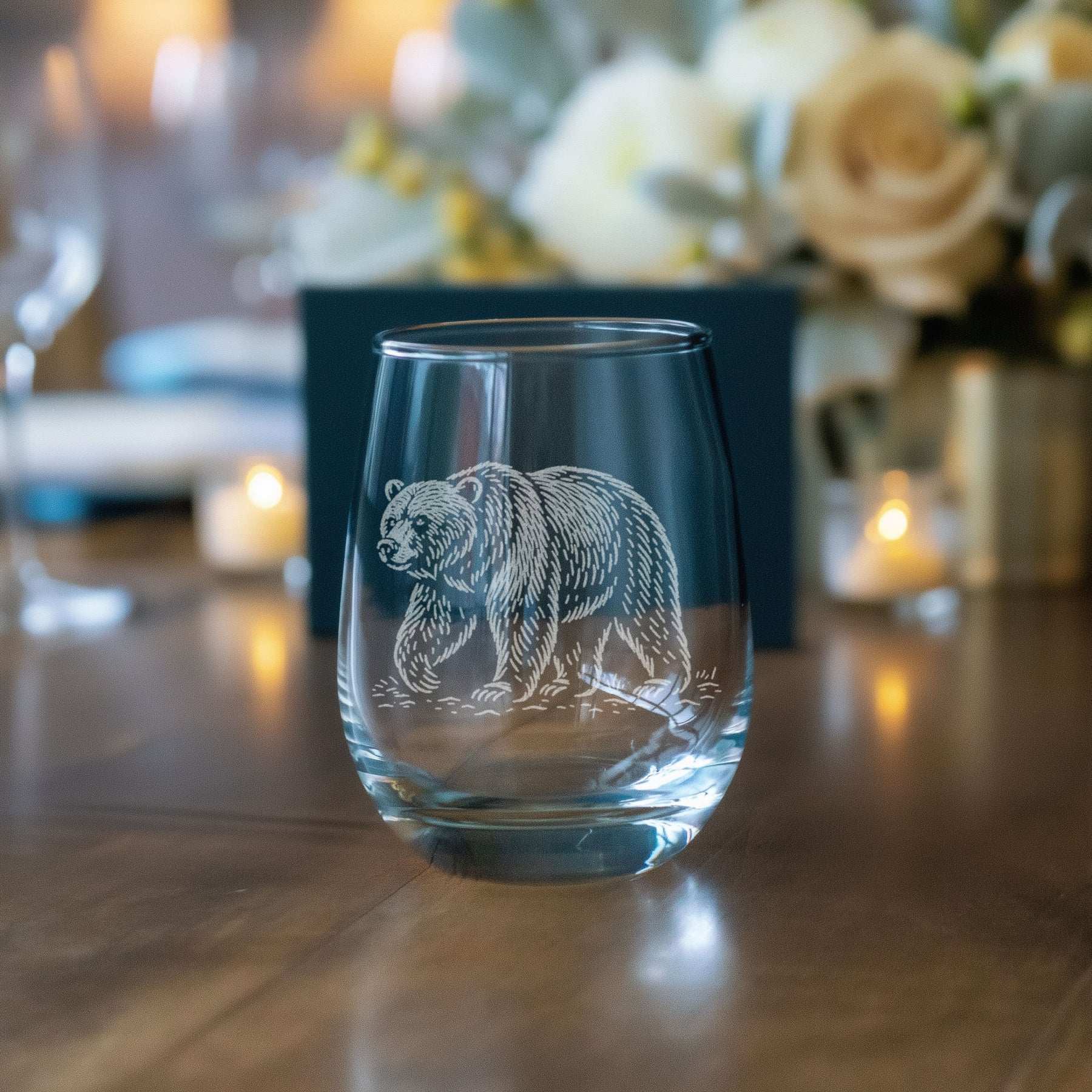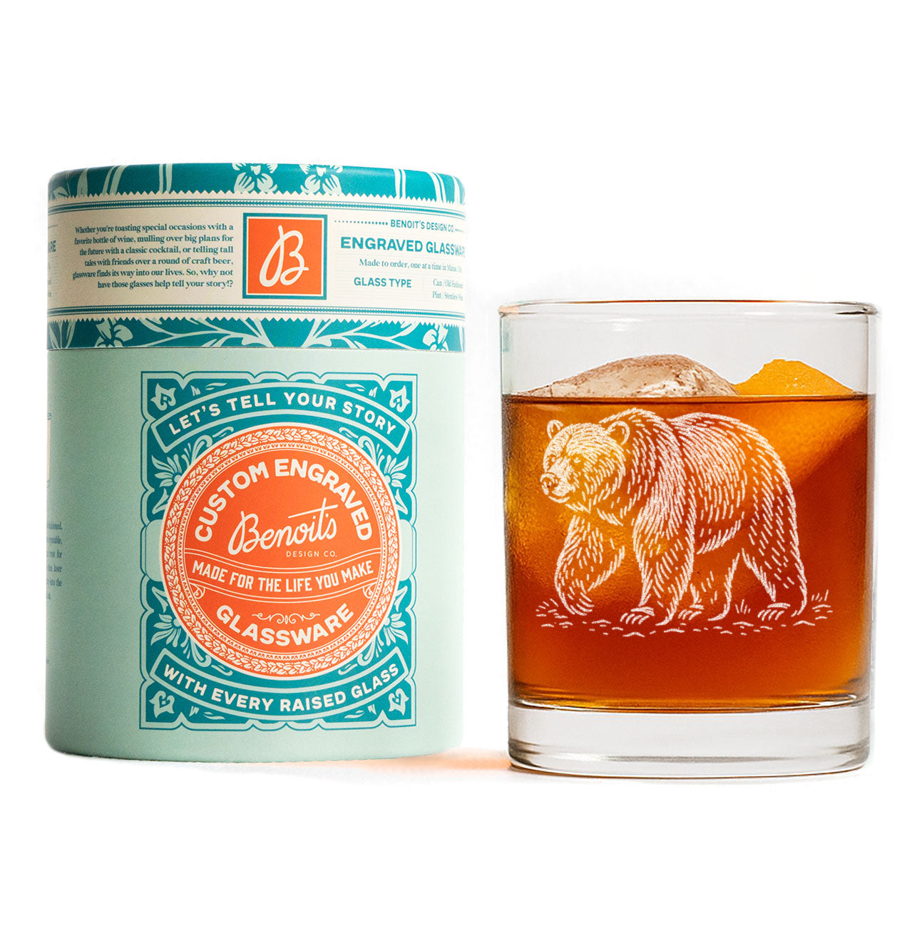 A quiet tribute to the wild. This glass features a finely engraved grizzly bear, rendered in a timeless woodcut style that captures both strength and solitude. Whether it’s a nod to mountain mornings or evenings spent fireside, this design brings a bit of the wilderness to your barware.