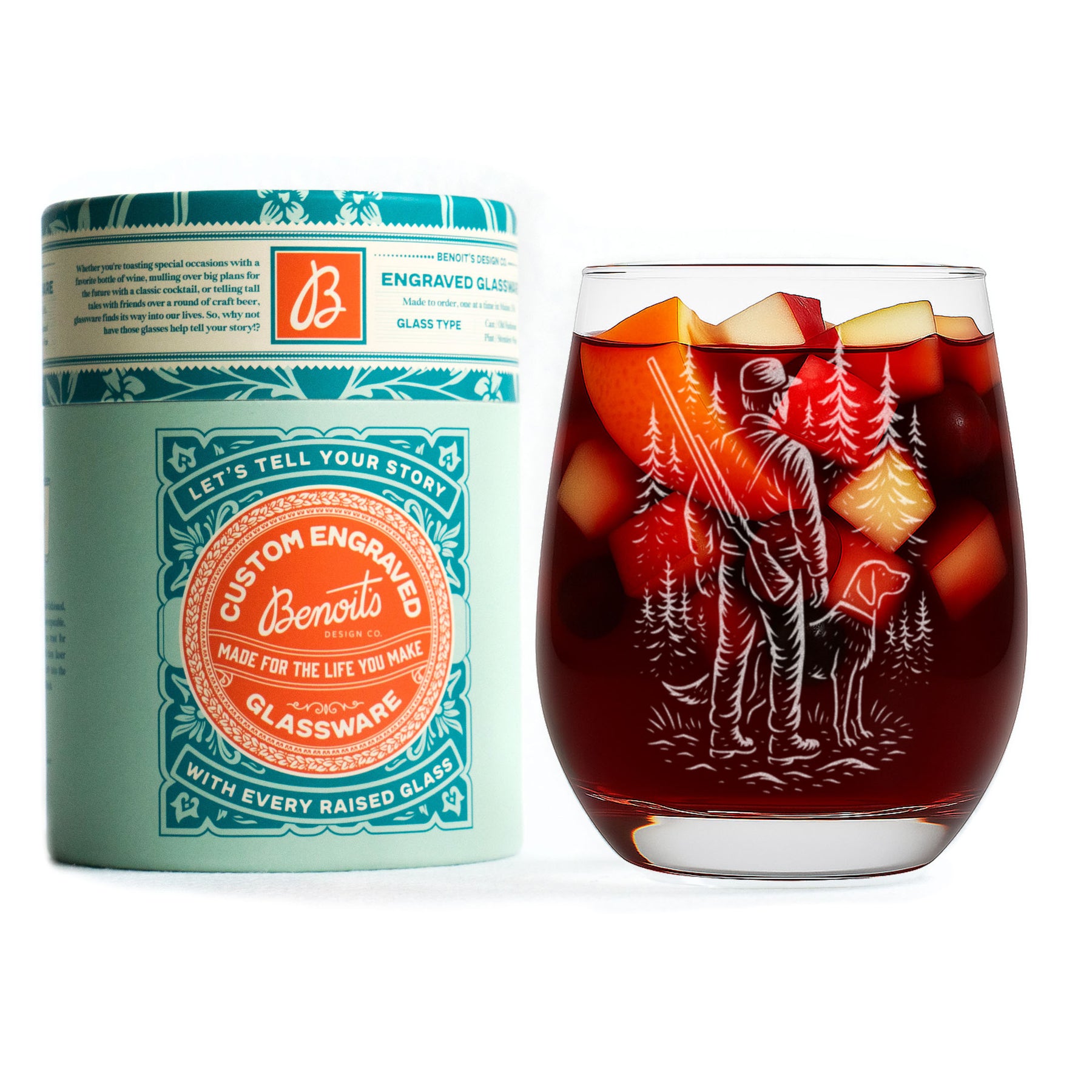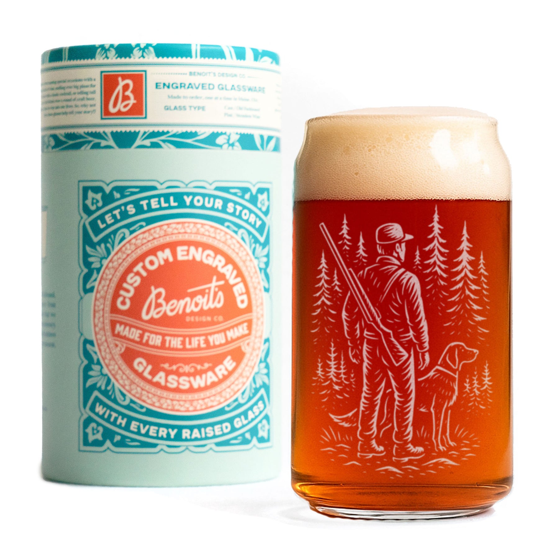 A quiet morning, a loyal dog, and the stillness of the woods before the day begins—this glass captures it all. The finely engraved artwork depicts a hunter and his companion standing at the tree line, a timeless nod to tradition, patience, and respect for the land. Whether it’s filled with bourbon by the fire or sweet tea at the cabin, it’s made for those who feel most at home outdoors.
