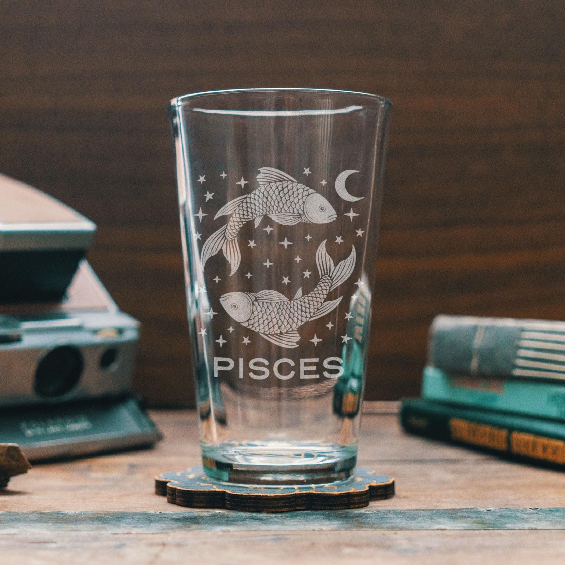 Dreamy, intuitive, and full of imagination — this engraved glass captures the gentle spirit of Pisces. Featuring two intertwined fish beneath a crescent moon and scattered stars, it reflects the sign’s deep emotions, creativity, and connection to the unseen currents of life. Perfect for wine, cocktails, or quiet moments of reflection, this piece embodies Pisces’ serene, soulful nature — a reminder to flow freely and follow your intuition.