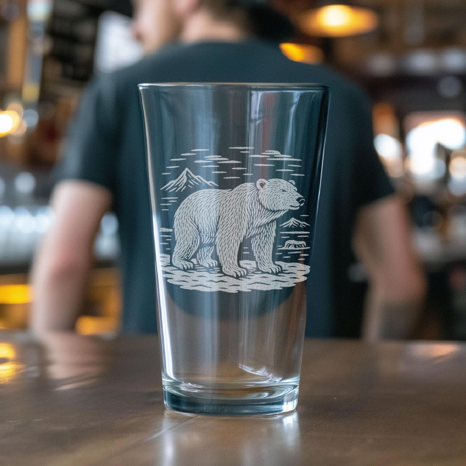 Bring the quiet strength of the Arctic to your barware collection. Our Polar Bear Glass features a beautifully etched polar bear standing against a backdrop of icy waters and distant mountains. Clean, hand-drawn linework captures the bear’s powerful stance and the serene, rugged landscape it calls home.