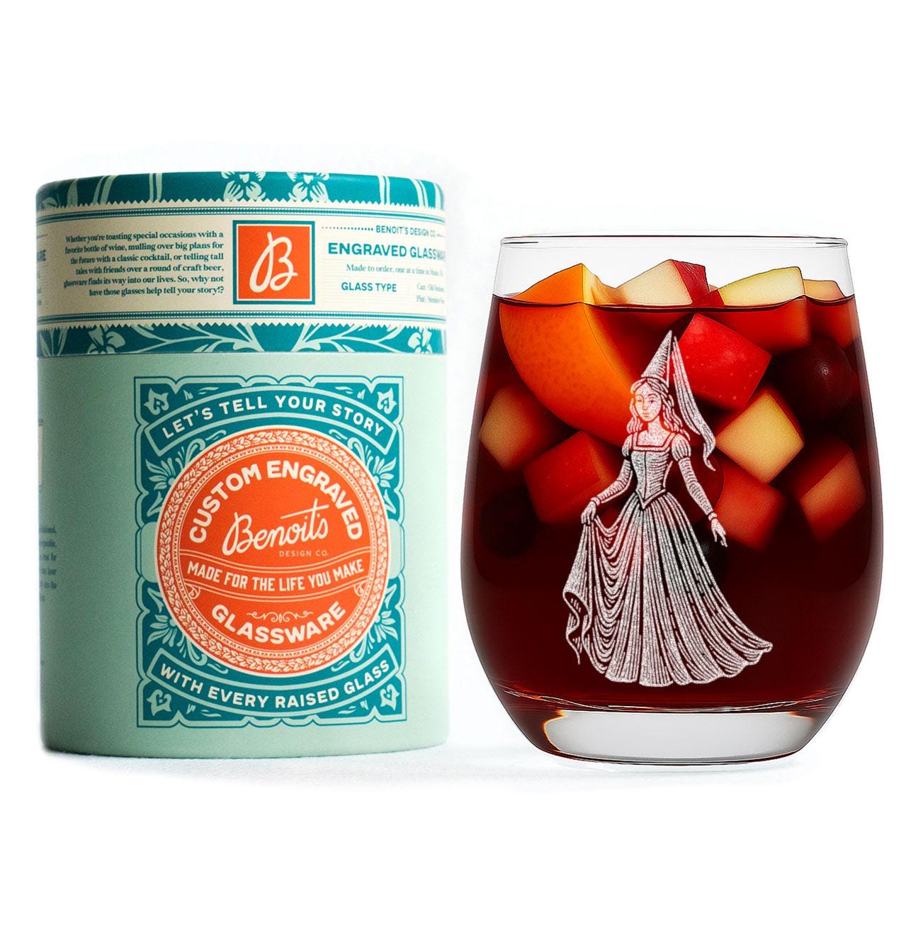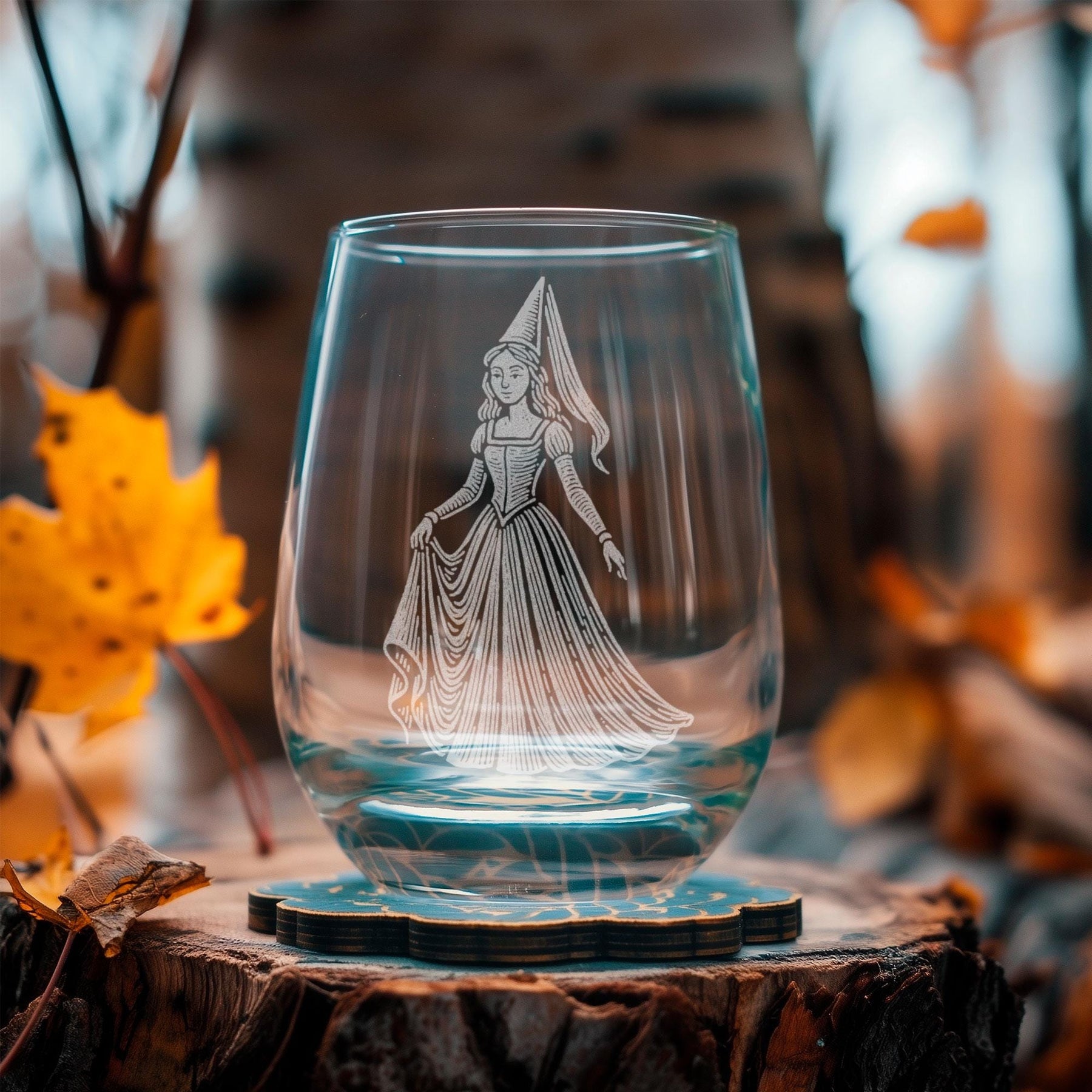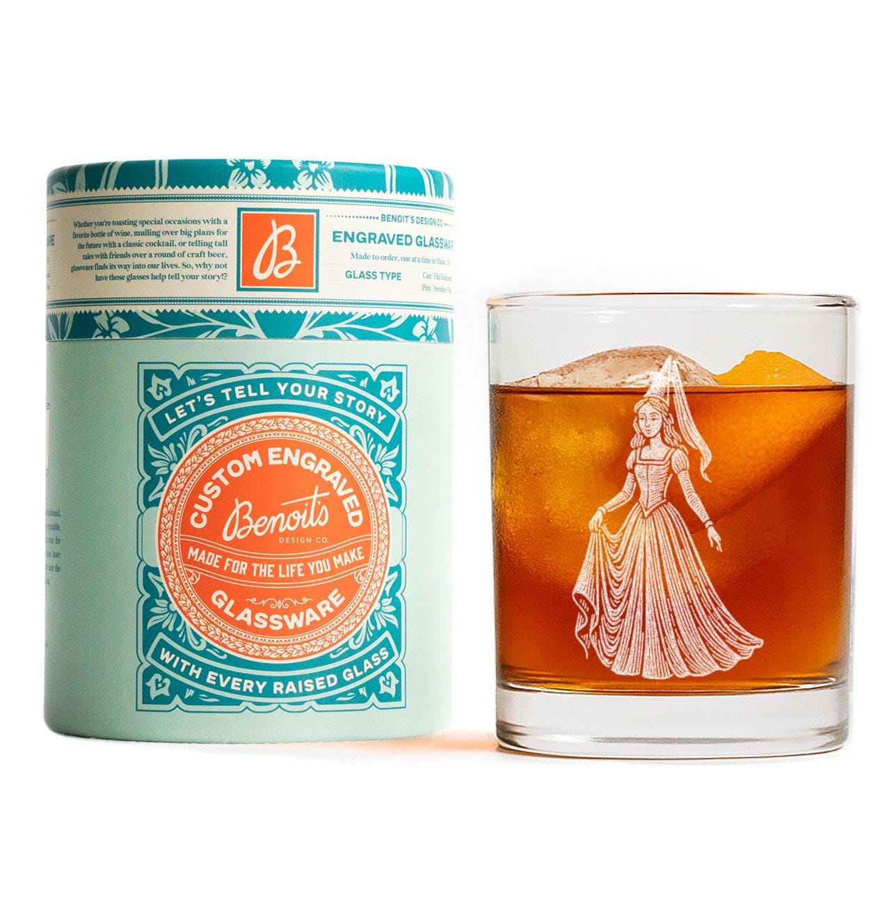 Step into a storybook moment with this beautifully engraved princess glass — a graceful, vintage-inspired illustration etched in crisp white linework. With flowing robes, a classic pointed hennin, and a serene fairytale pose, she brings a touch of old-world magic to any drink. Perfect for fairytale lovers, fantasy readers, renaissance enthusiasts, or anyone who still believes in “happily ever after.” Cheers to a little enchantment in every sip.