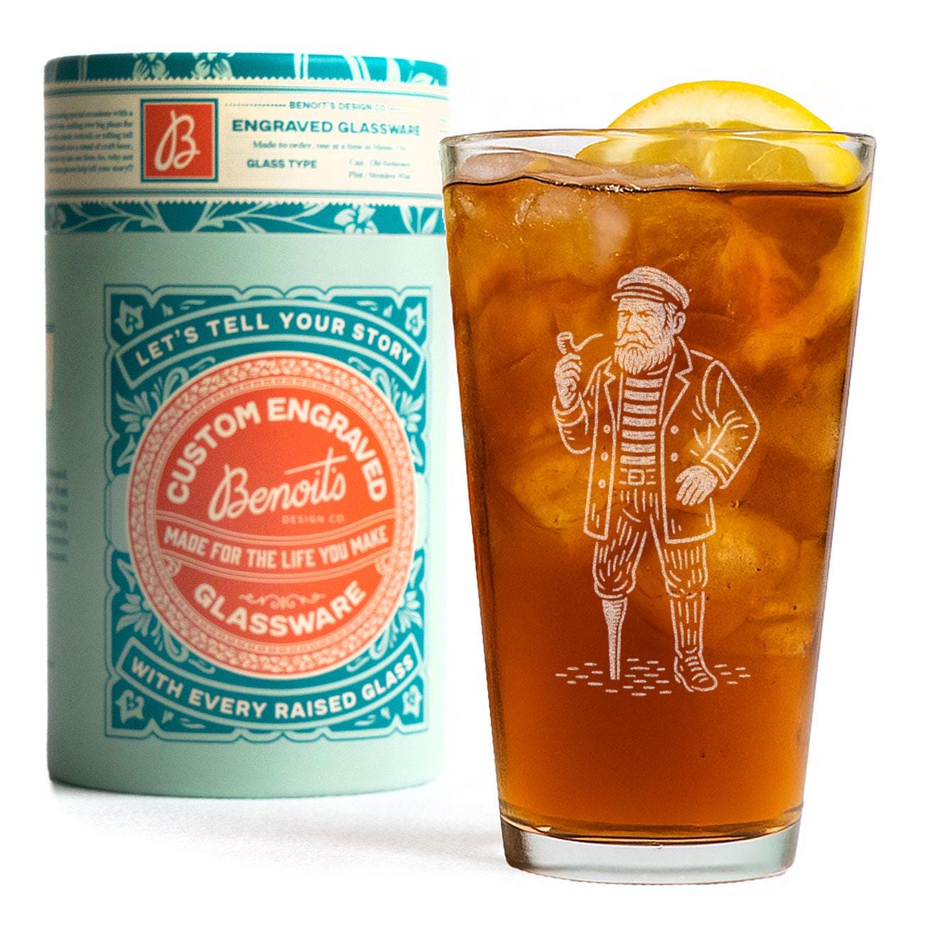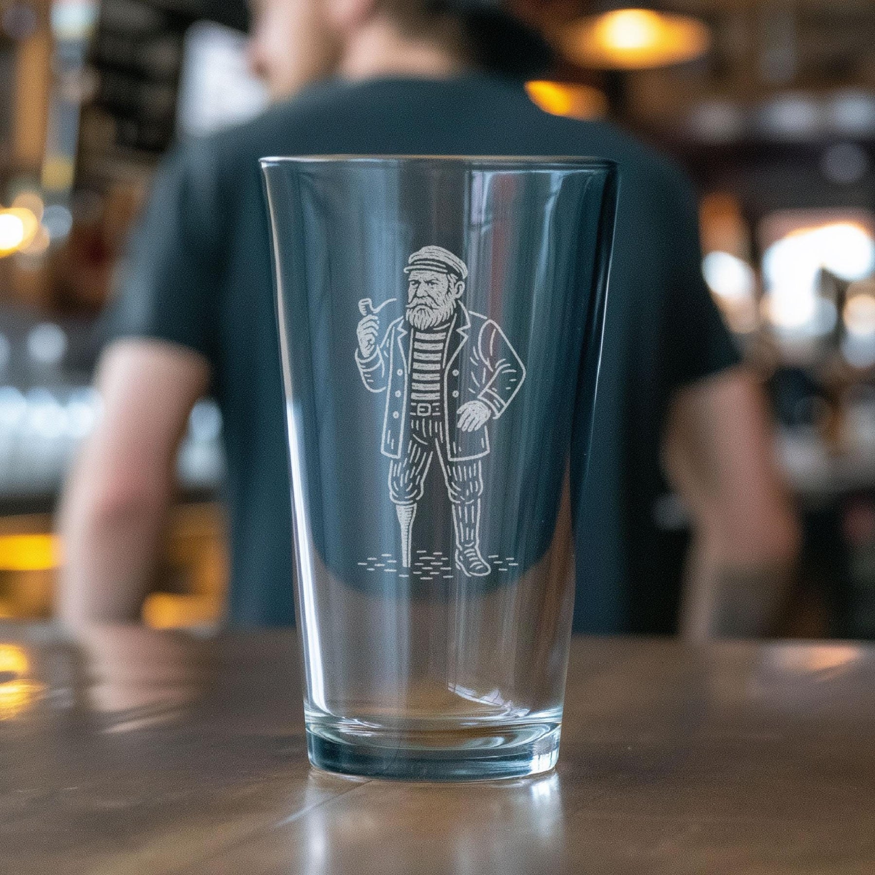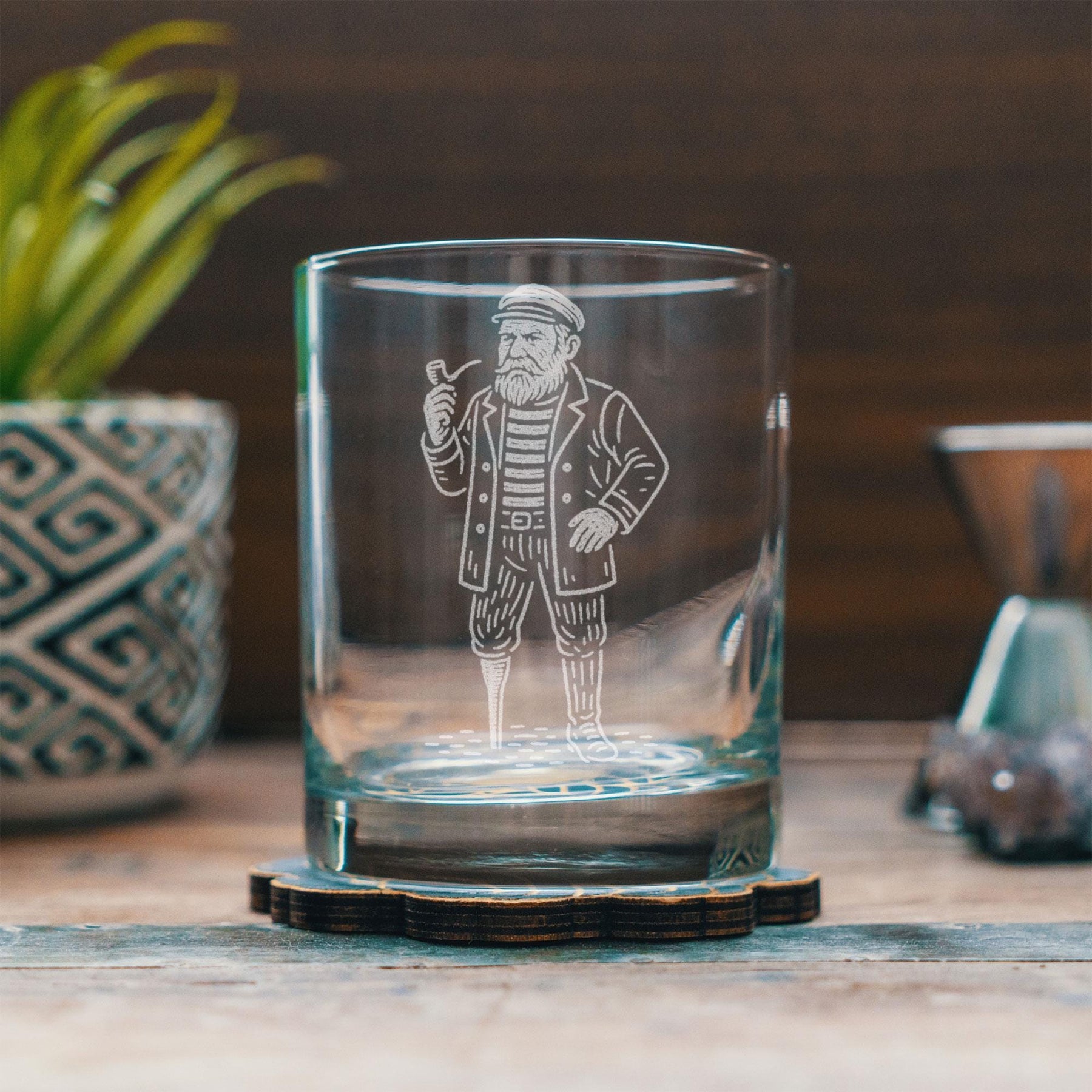 Bring a bit of seafaring spirit to every glass with our Sailor Glass. This finely detailed laser-etched illustration features a classic old-salt sailor — complete with striped shirt, weathered coat, and trusty pipe — standing strong like he’s stepped right off the docks. Perfect for ocean lovers, nautical décor fans, and anyone who feels most at home by the sea.