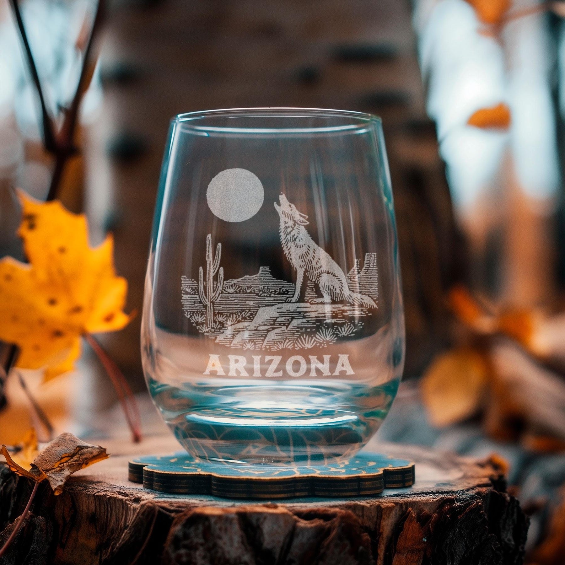 Arizona Desert Coyote Engraved State Glasses