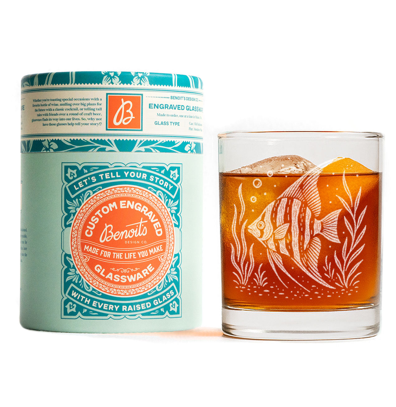 Bring a touch of underwater elegance to every sip with our Angelfish Glass. Featuring a beautifully detailed laser-etched angelfish surrounded by gentle aquatic linework, this design captures the grace and ease of life beneath the waves. Perfect for beach lovers, aquarium enthusiasts, tropical travelers, or anyone drawn to the calm of the sea.