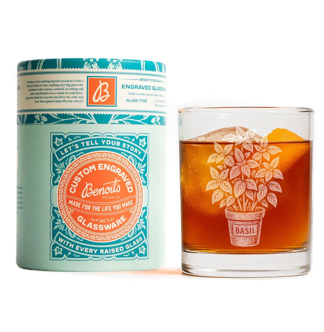 Raise a glass to the little things that make home feel alive — like the scent of fresh basil drifting through an open kitchen window. Our Basil Glasses celebrate simple joys and garden moments with a crisp, botanical engraving inspired by classic herb illustrations. Whether you’re mixing up a cocktail, pouring a fresh lemonade, or tending to your countertop garden, these glasses bring a touch of green-thumb charm to every sip.