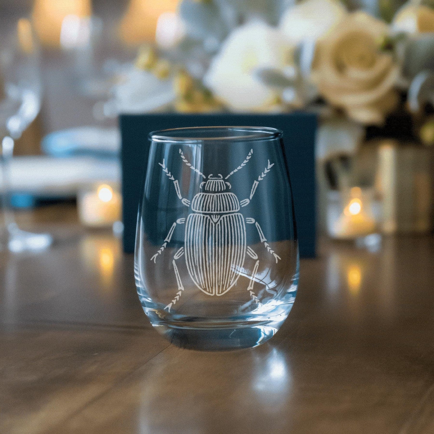 Intricate, resilient, and full of quiet strength — this engraved glass celebrates the beauty of one of nature’s most enduring creatures: the beetle. With its detailed lines and symmetrical form, the design honors the beetle’s timeless symbolism of transformation, protection, and renewal. Whether used for a morning iced coffee or an evening pour, this piece brings a grounded, earthy elegance to any table or collection.