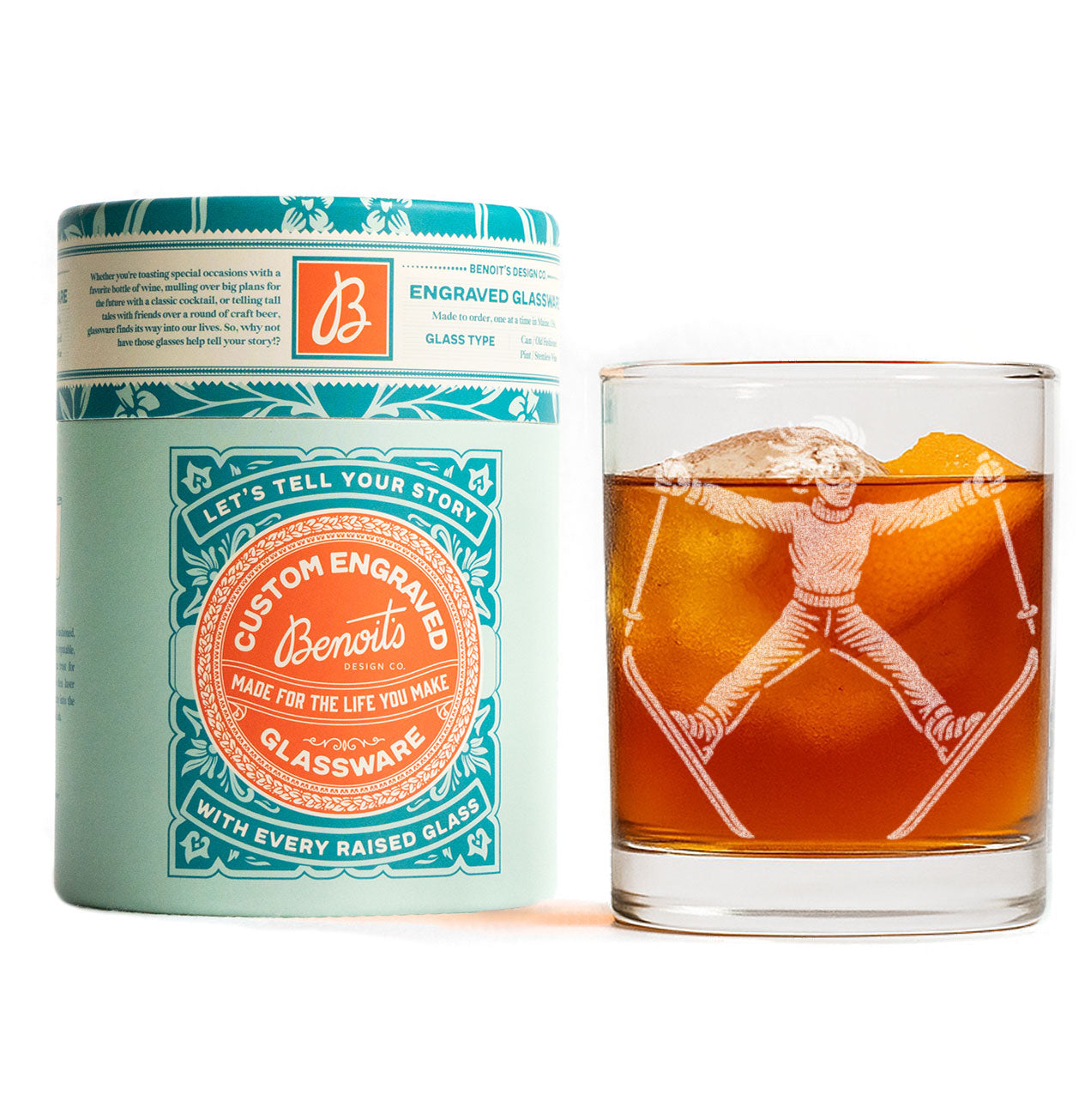 The engraving is permanent, dishwasher safe, and designed to look sharp through every pour — from cocktails and mocktails to hot toddies and lodge-side drinks.