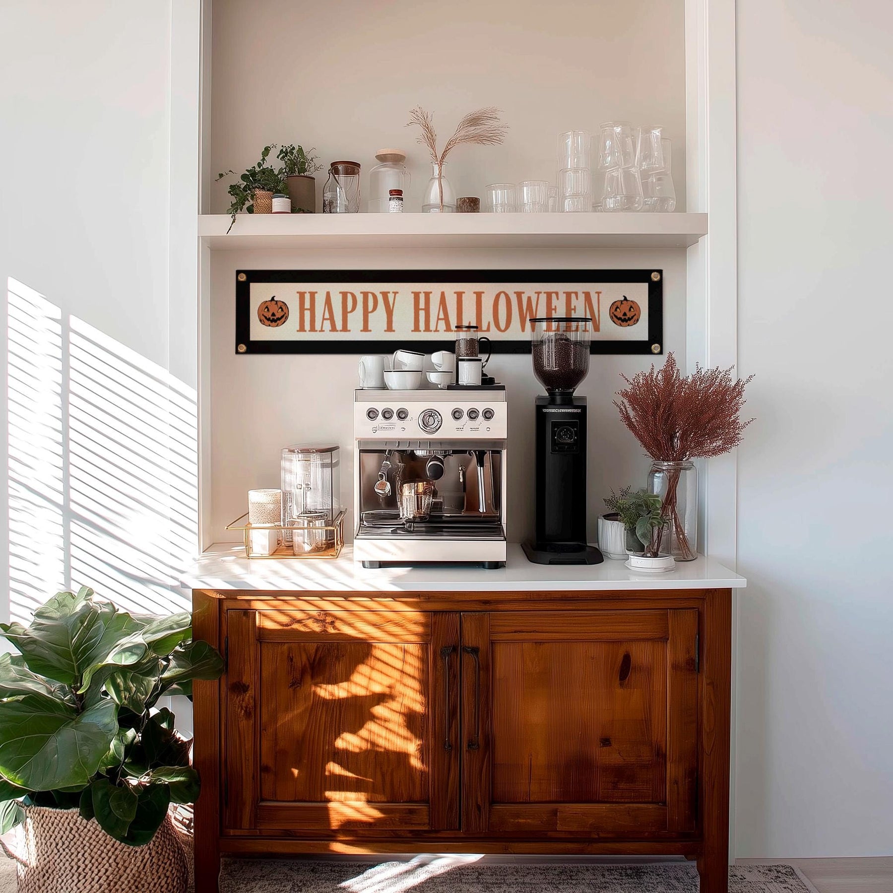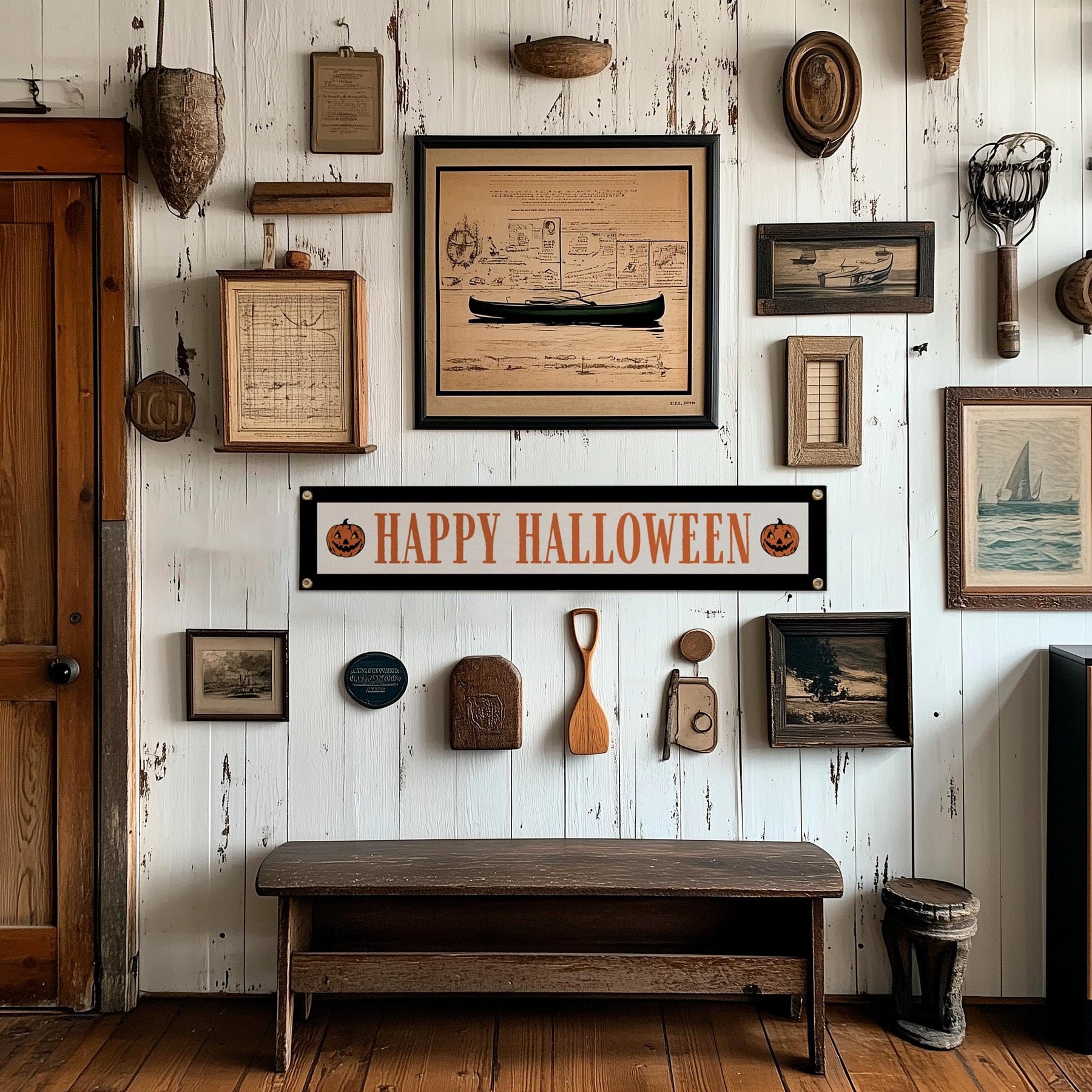 Get in the spooky spirit with the "Happy Halloween" felt 8" x 40" banner. Inspired by vintage halloween decorations, this banner is perfect for bringing some ghostly greetings to your home!