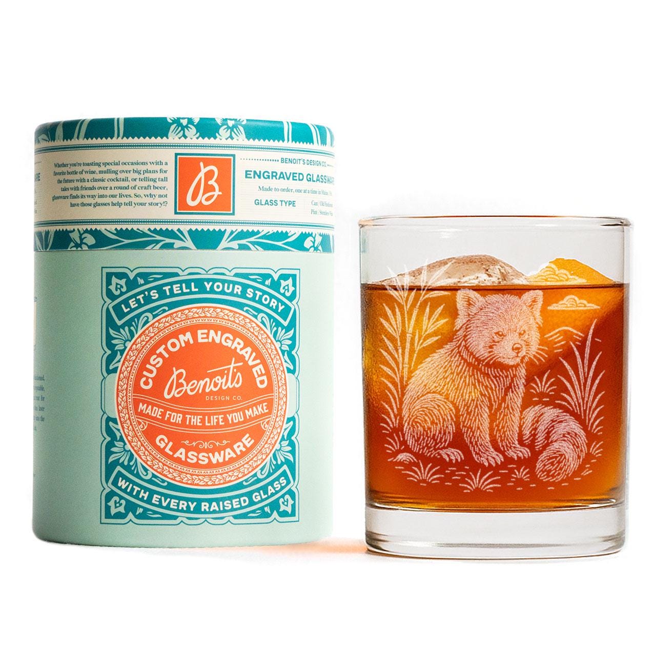 Each glass is etched in our Maine studio for crisp detail and a lasting design that won’t fade or wash away. Whether you're enjoying whiskey, cocktails, or a warm-and-cozy evening pour, this little red panda brings a comforting, peaceful vibe to every glass.