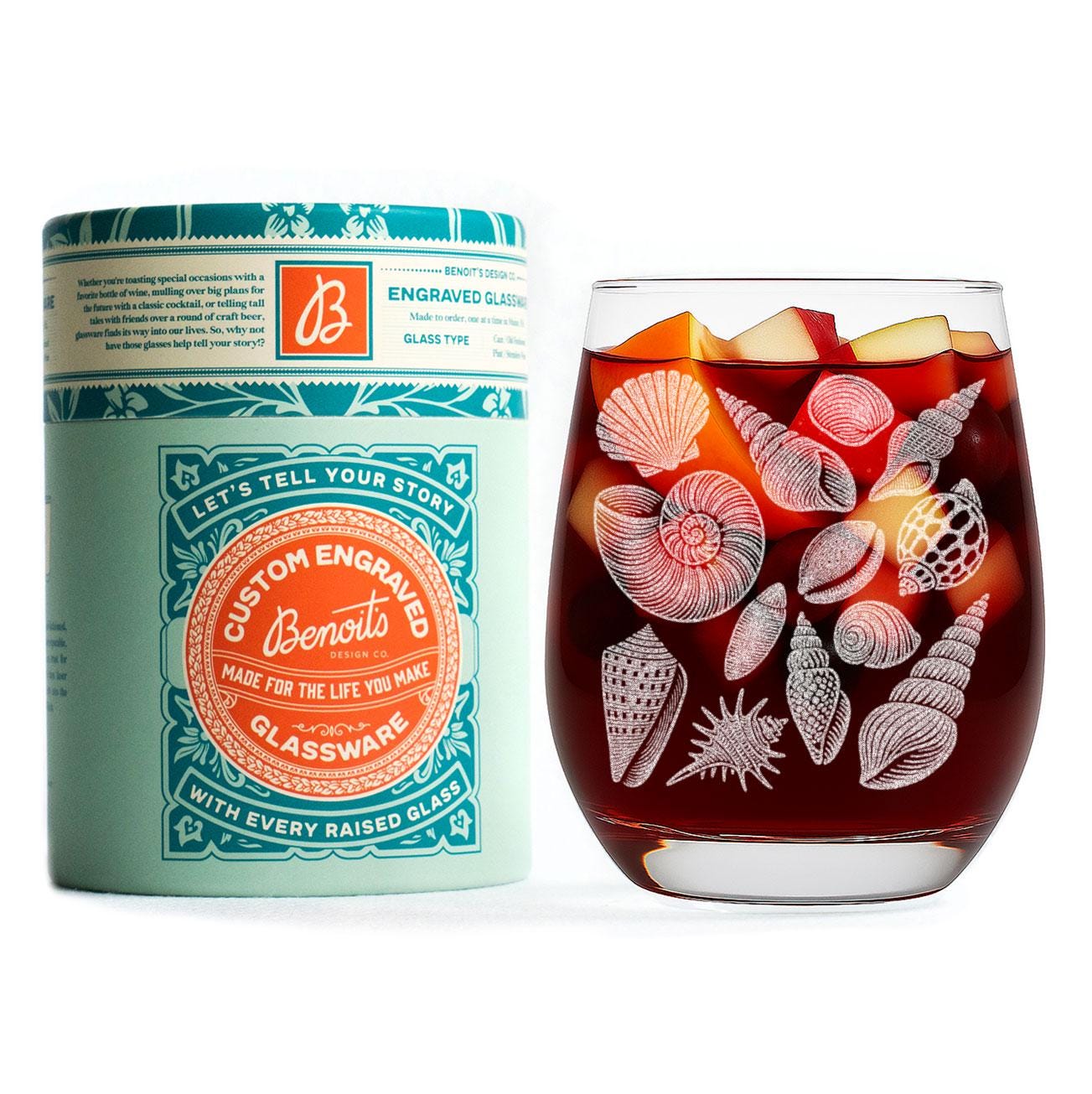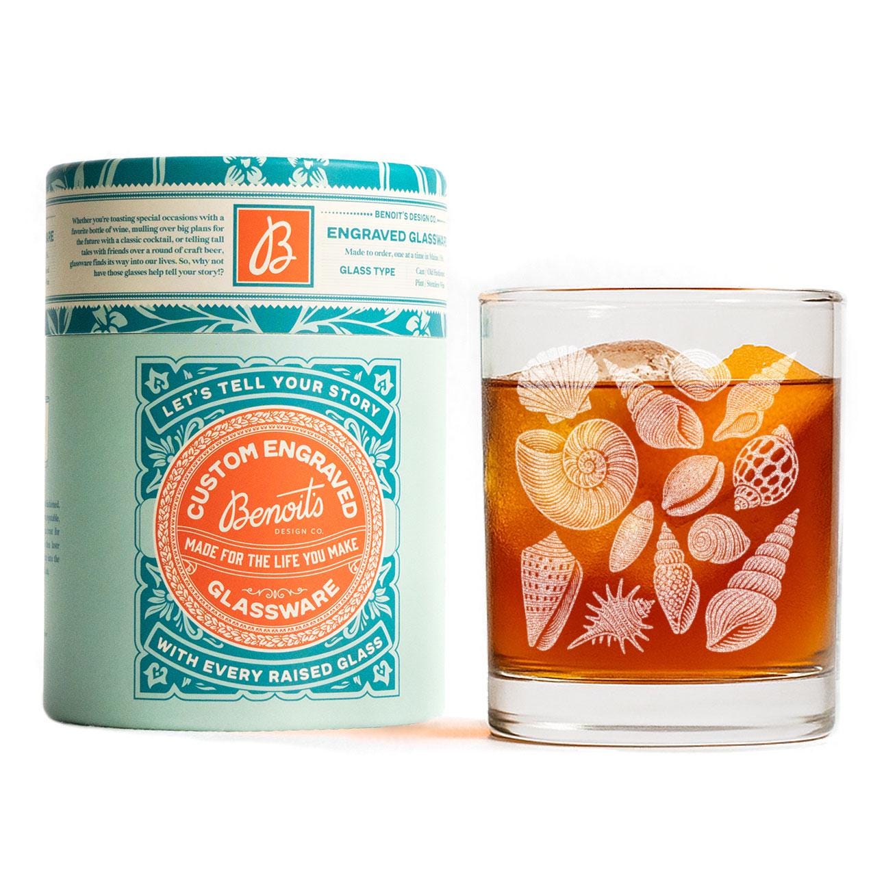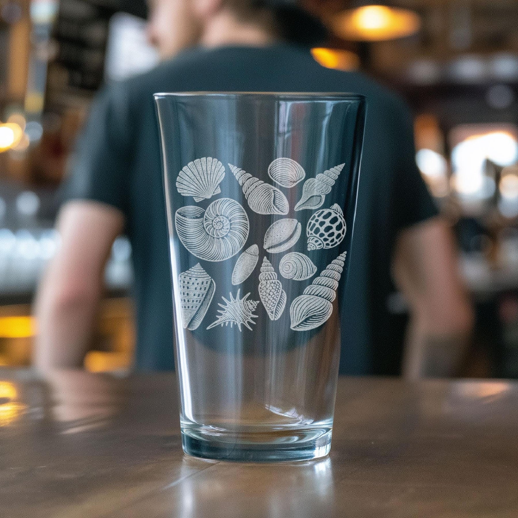 Bring a little coastal magic to every glass with our Shells Glass. This finely detailed laser-etched illustration features a collection of classic seashells — from spirals to scallops to tiny textured treasures — arranged in a lively, beach-combed pattern. Perfect for ocean lovers, beach wanderers, and anyone who feels their best with sand between their toes.