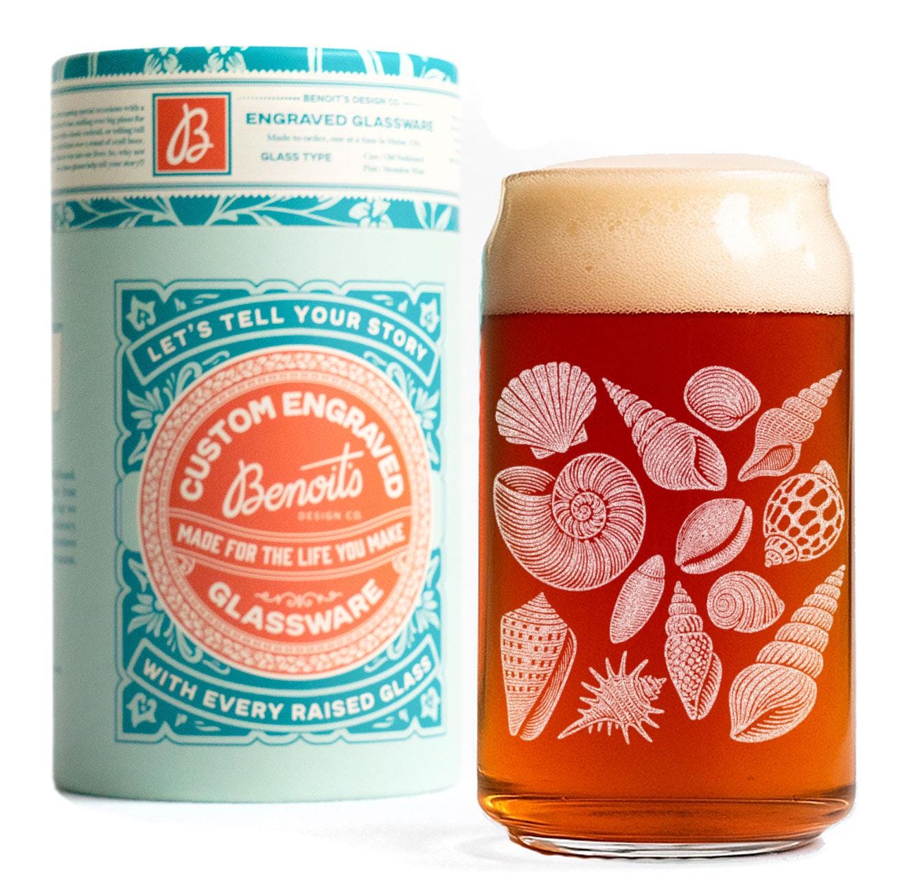 Each glass is etched in our Maine studio, creating a crisp design that won’t fade or wash away. Whether you're sipping a summer cocktail, iced tea after a long beach day, or a cold beer at sunset, these shells bring a warm seaside vibe to every pour.