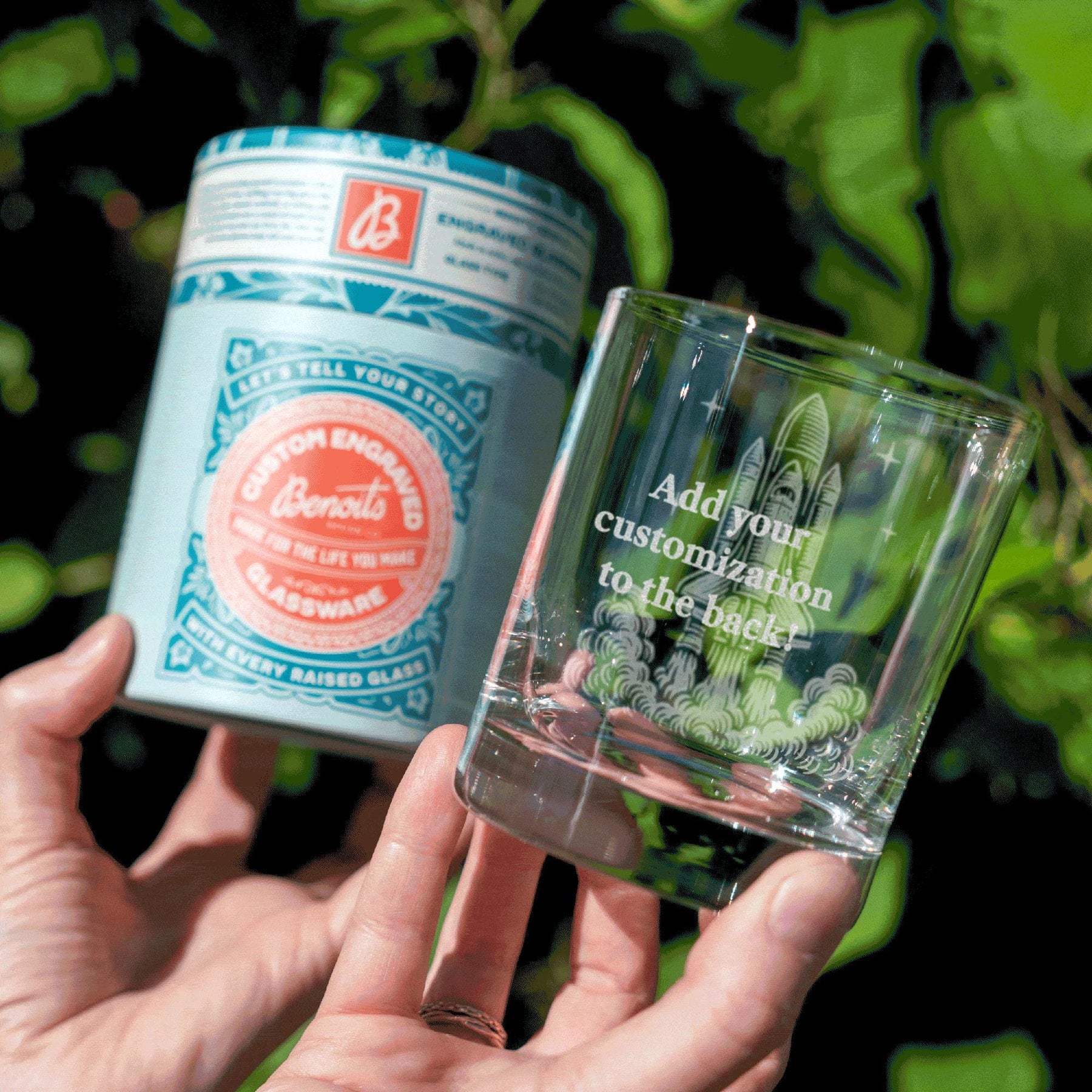 Each glass is etched in our Maine studio, creating a crisp design that won’t fade or wash away. Whether you're enjoying an evening cocktail, morning iced coffee, or celebrating a milestone moment, this glass brings a spark of adventure to every pour.
