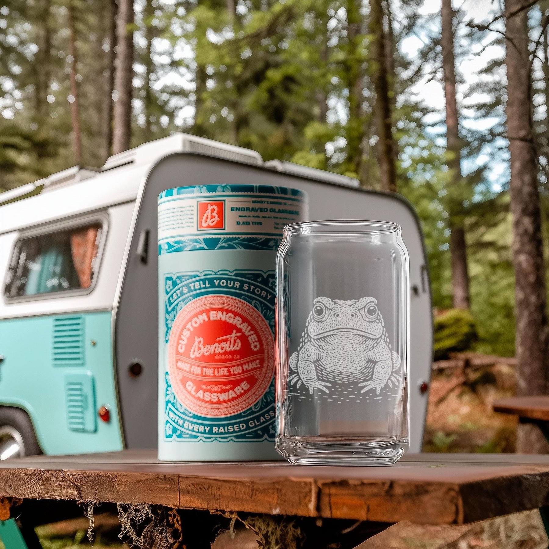 Add a bit of whimsical woodland charm to every sip with our Toad Glass. This finely detailed laser-etched illustration features a plump little toad perched among forest plants — full of character and perfect for nature lovers, gardeners, hikers, and anyone who enjoys the quiet magic of the outdoors.