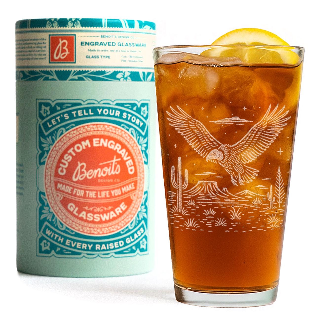 Each glass is etched in our Maine studio for a crisp, permanent design that won’t fade or wash away. From morning iced tea to evening cocktails, this glass brings a bold touch of the wild to every pour.