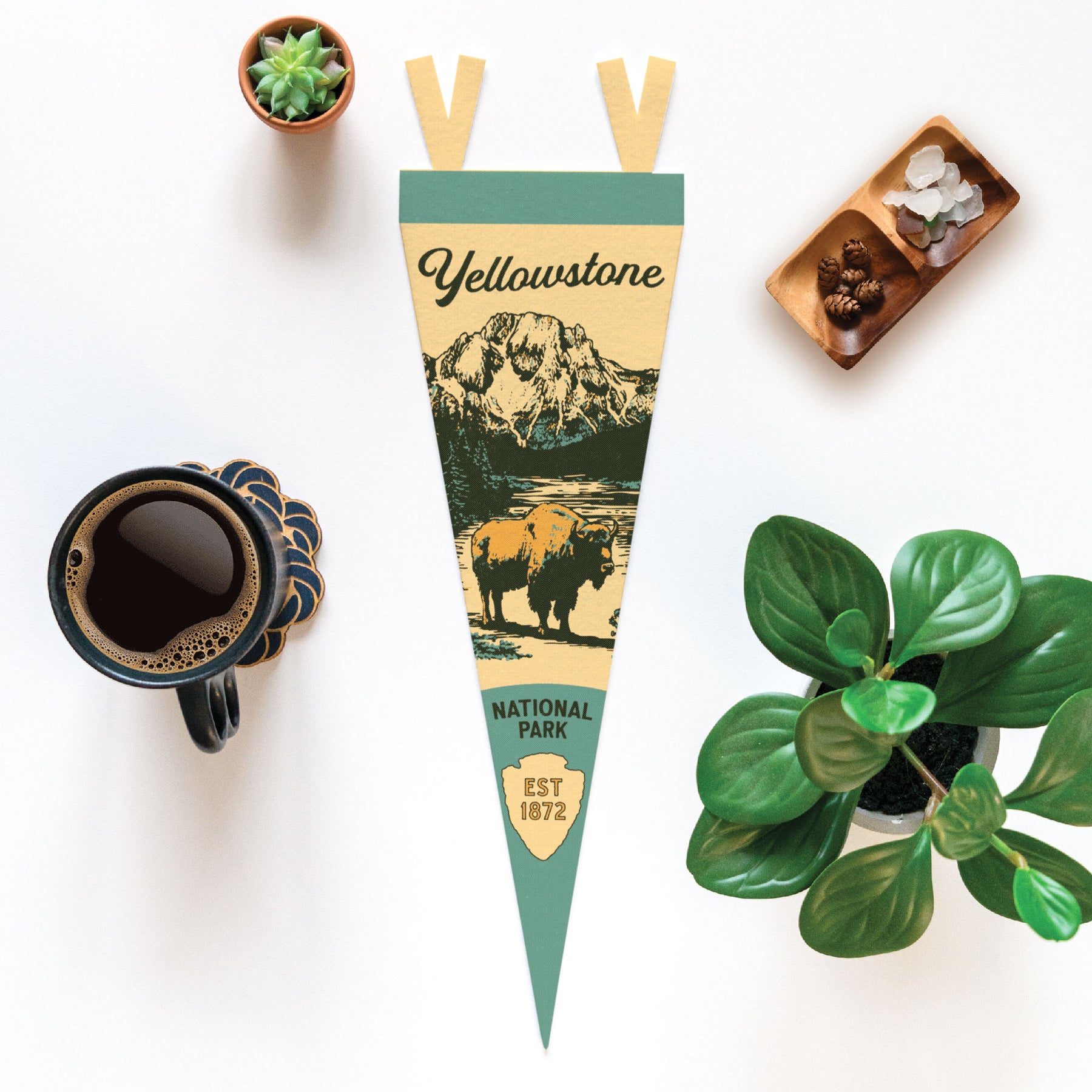 Check out our whole collection of National Park pennants available from our shop, featuring a chromatic color scheme and classic vintage design.